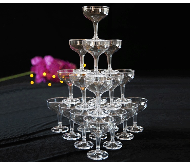亚克力加厚香槟杯塑料高脚杯庆典开业酒吧酒杯婚庆道具香槟塔杯子