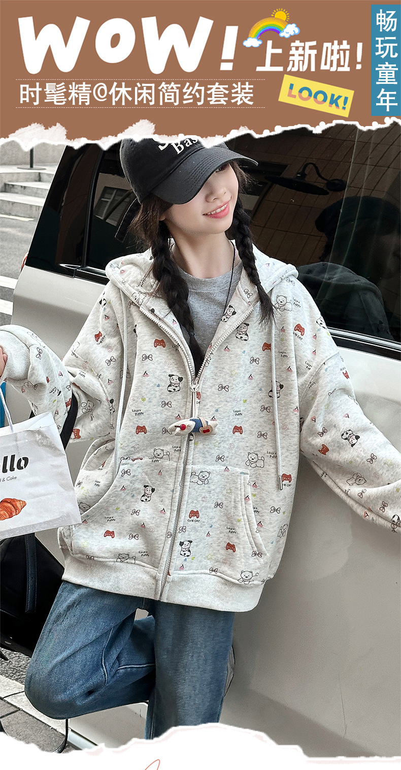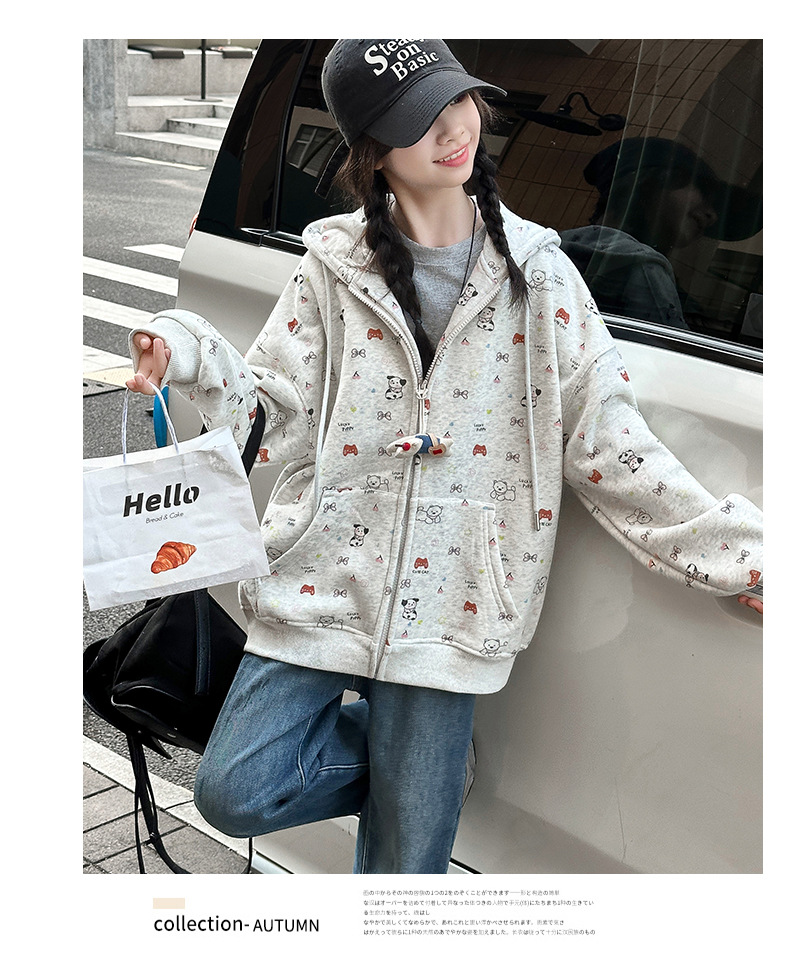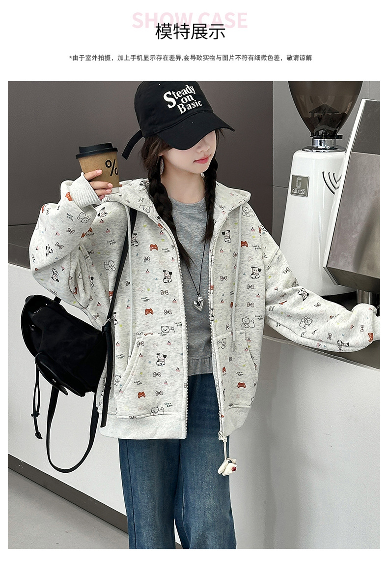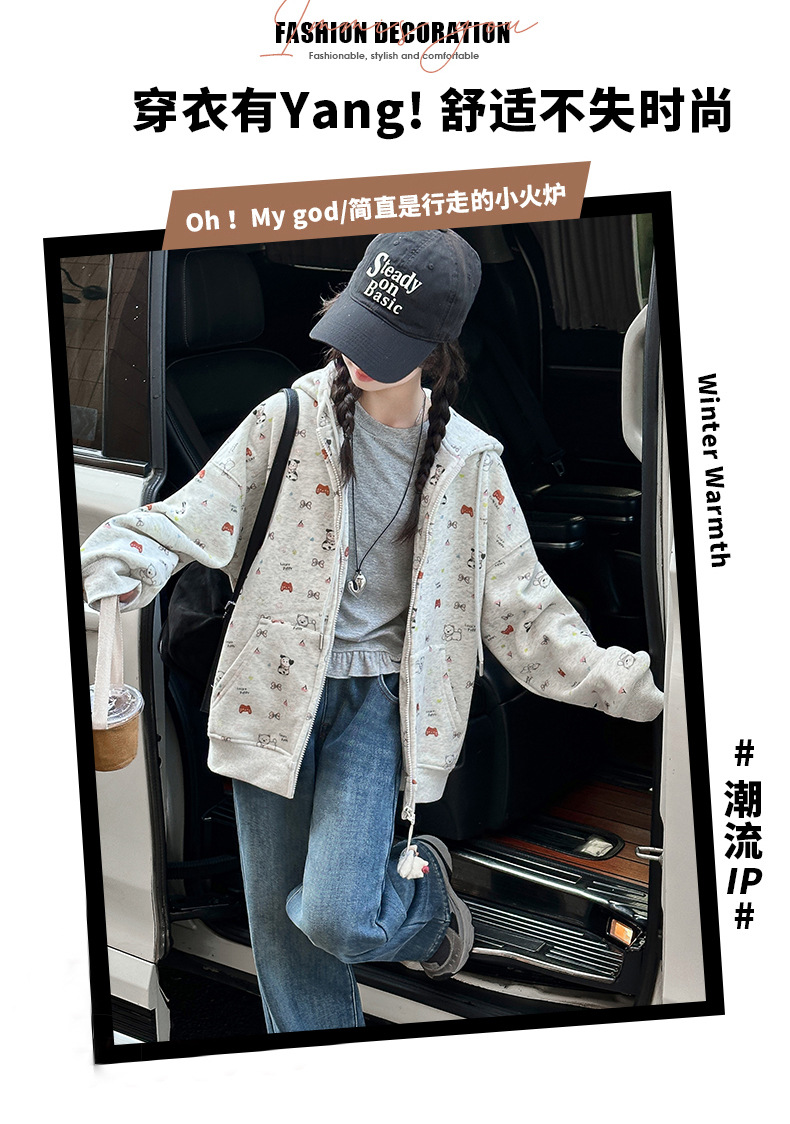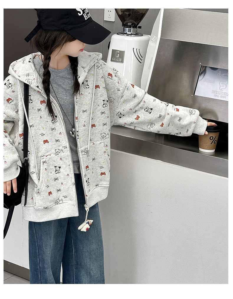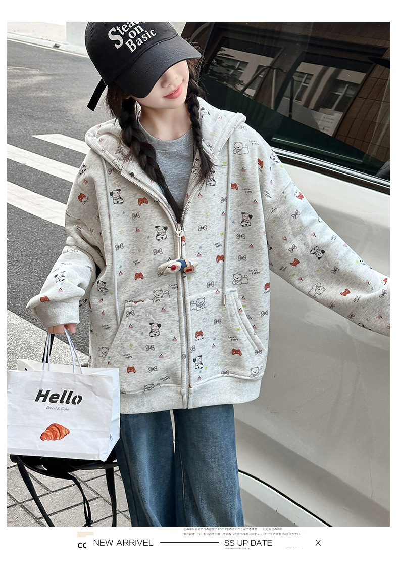 女童加绒卫衣外套2025秋冬新款中大童韩版休闲卡通加厚连帽拉链衫