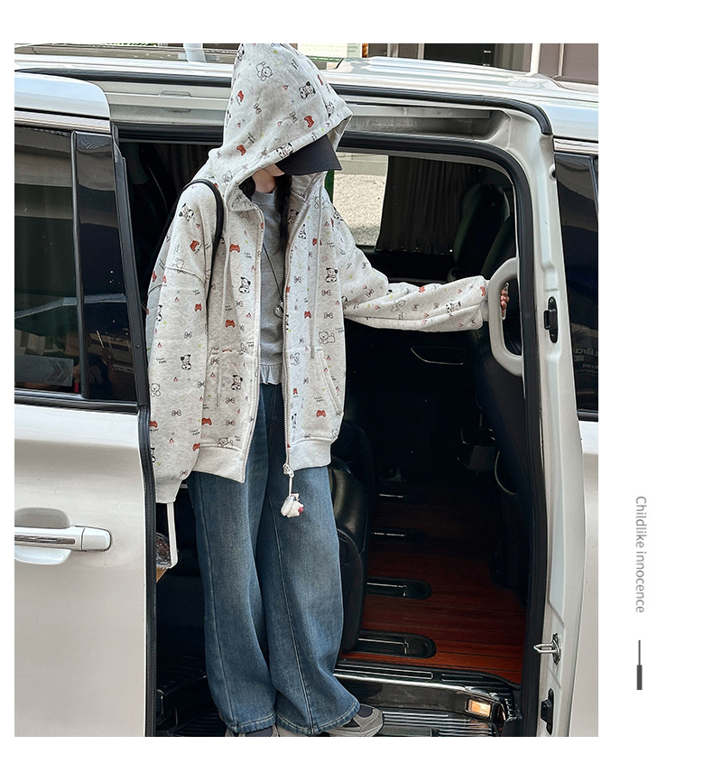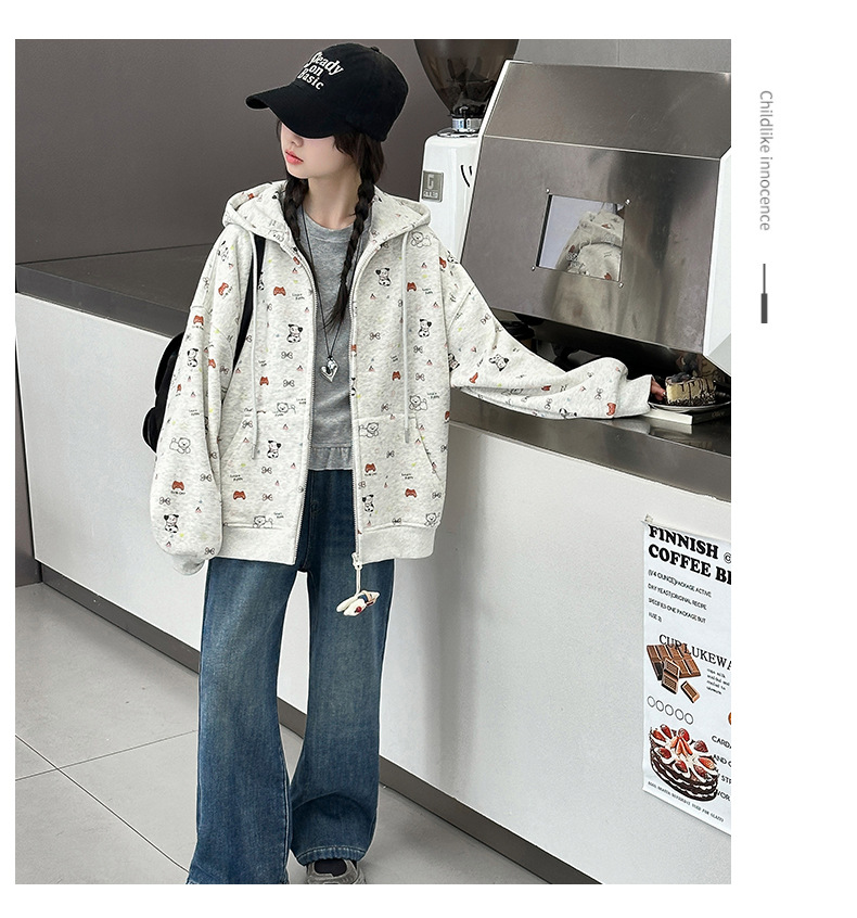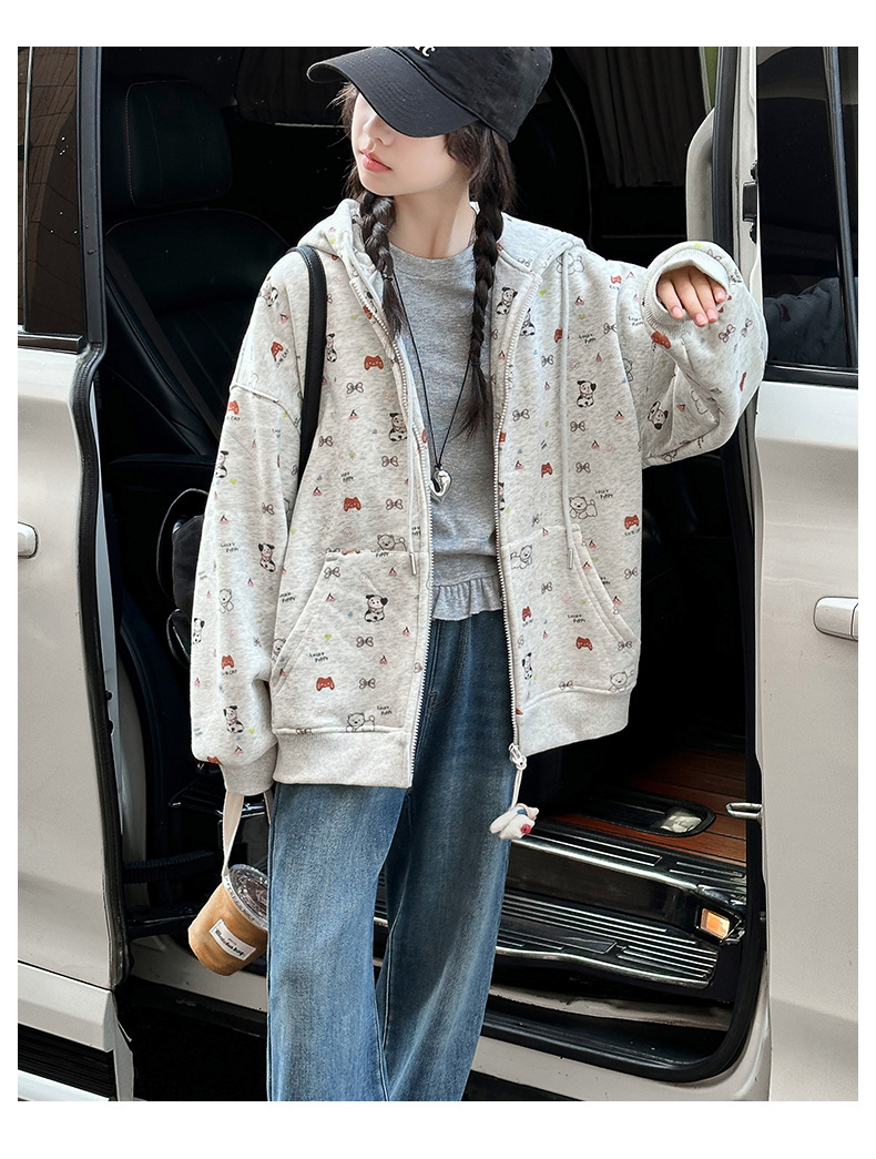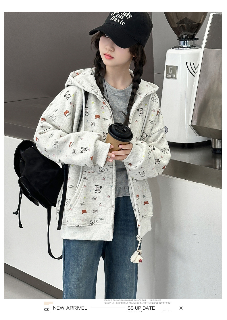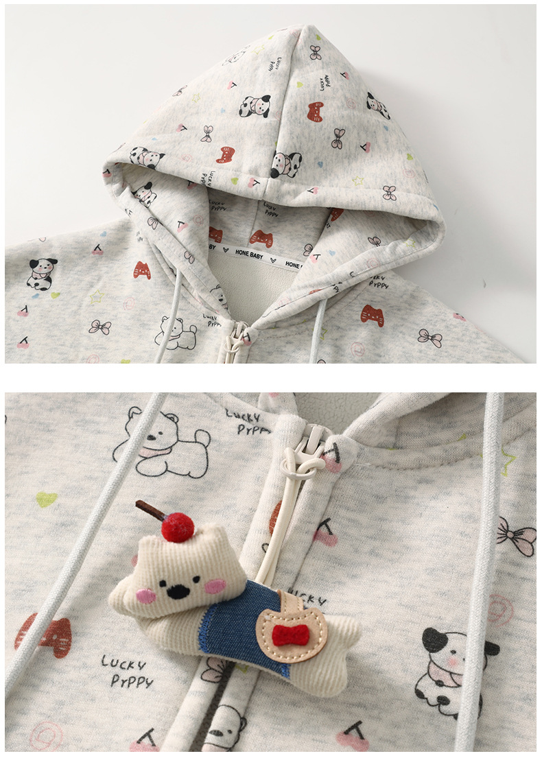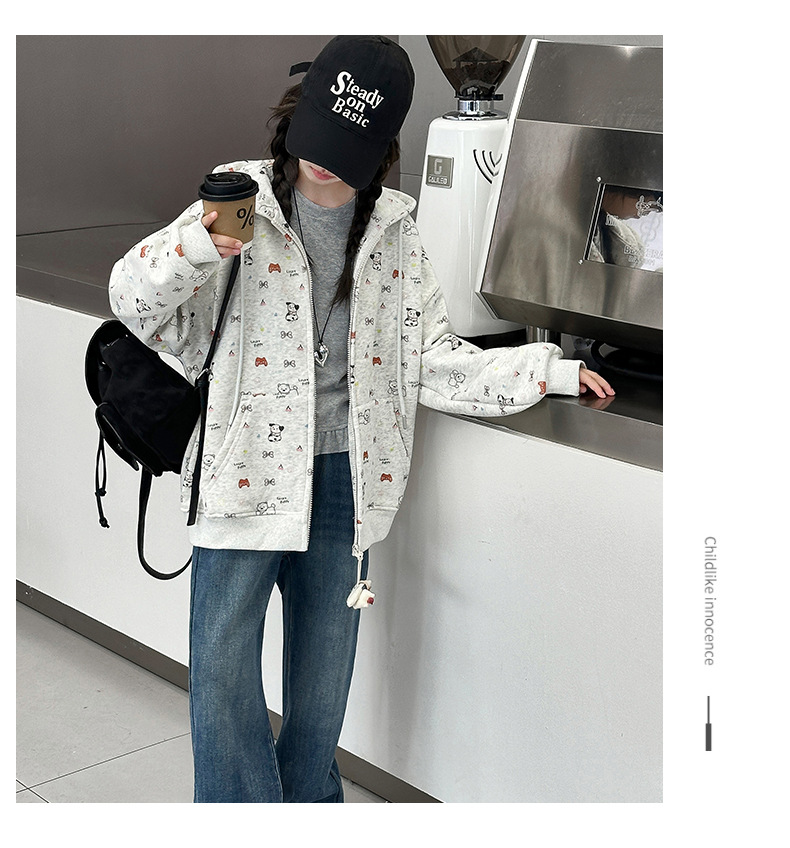 女童加绒卫衣外套2025秋冬新款中大童韩版休闲卡通加厚连帽拉链衫