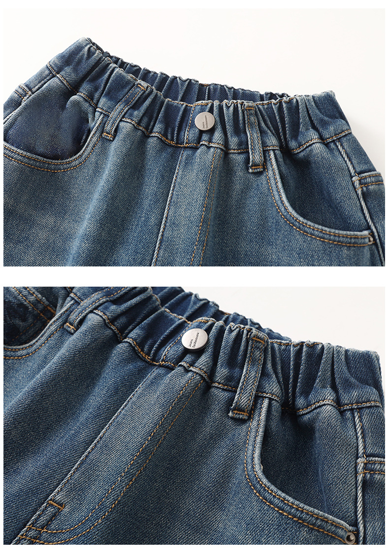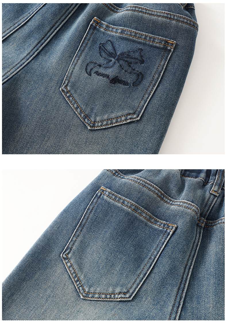 女の子用デニムカーブパンツ2026春秋新作おしゃれで万能なワイドパンツ、年長児用ドーパミンデニムパンツ
