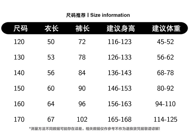 适合身高 120cm,130cm,140cm,150cm,160cm,170cm