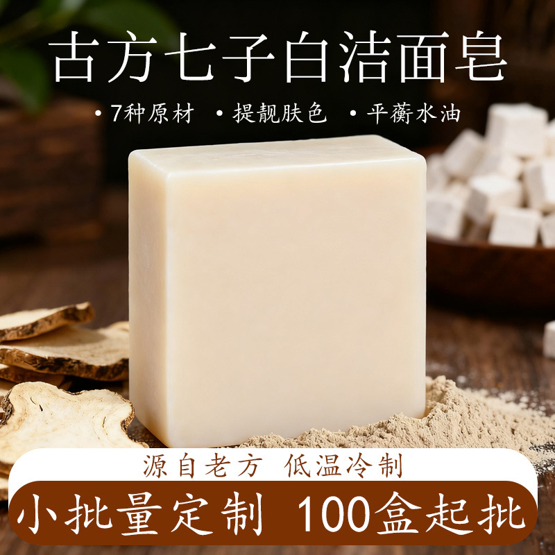 厂家批发七子白洁面皂7种草本植物萃取手工冷制皂家用洁面皂
