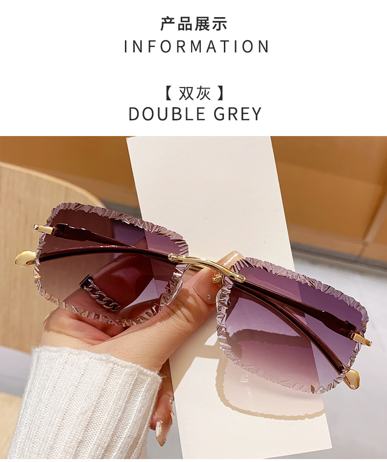 批发个性破碎造型镜片无边方框防晒墨镜ins风豹子头金配件太阳镜