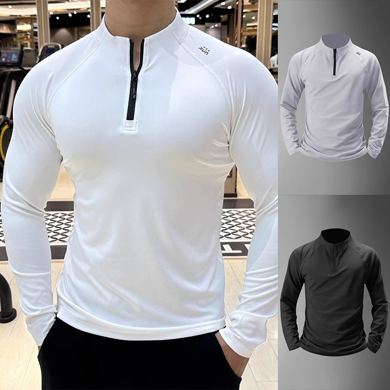 ランニング生新型トレーニングスタンドカラーtシャツ速乾男性スポーツウェア男性半ファスナーゆるい長袖フィットネスウェア上着