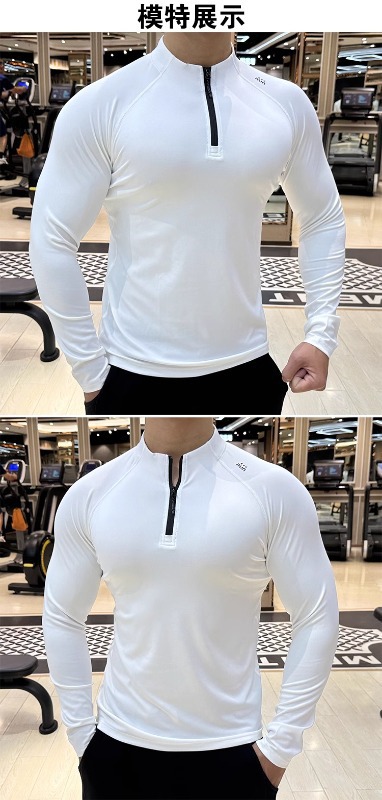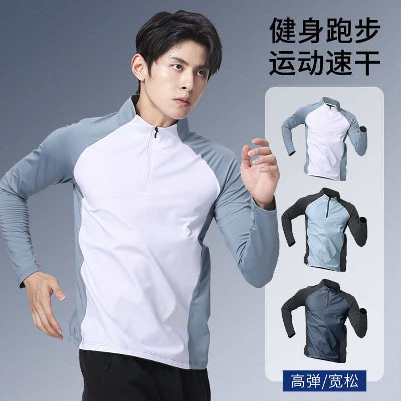 新款速干运动长袖训练服男士T恤半拉链排汗透气健身跑步上衣