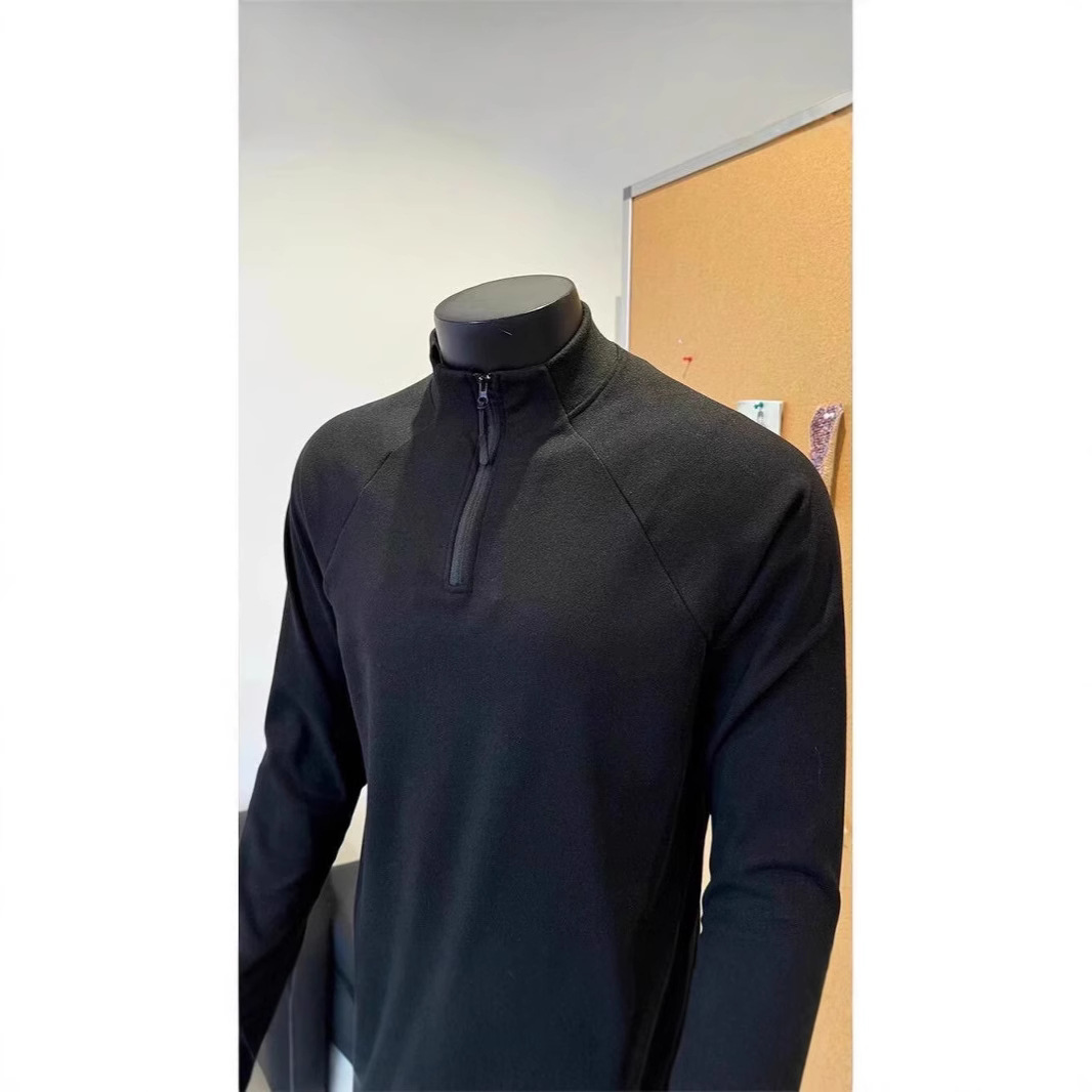 黒の両面徳絨毛の底のシャツの男性の秋冬のアメリカ式の半ファスナーの長袖の運動の訓練服のフィットネスのtシャツ