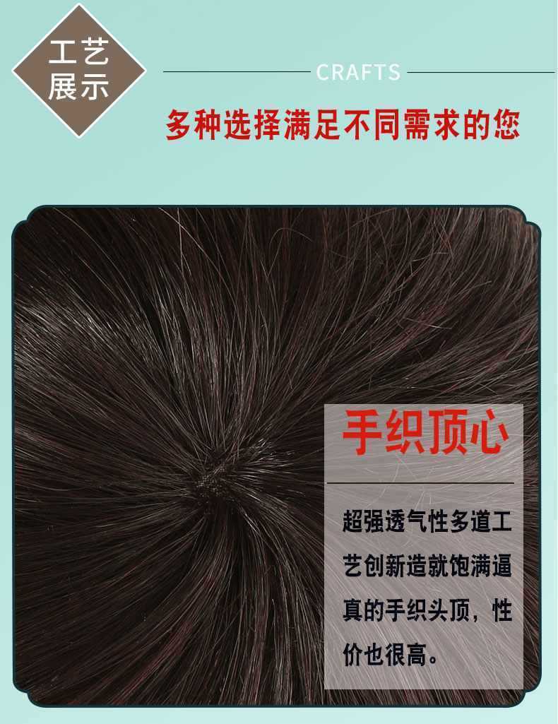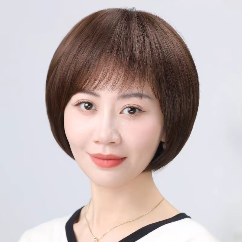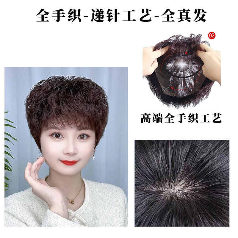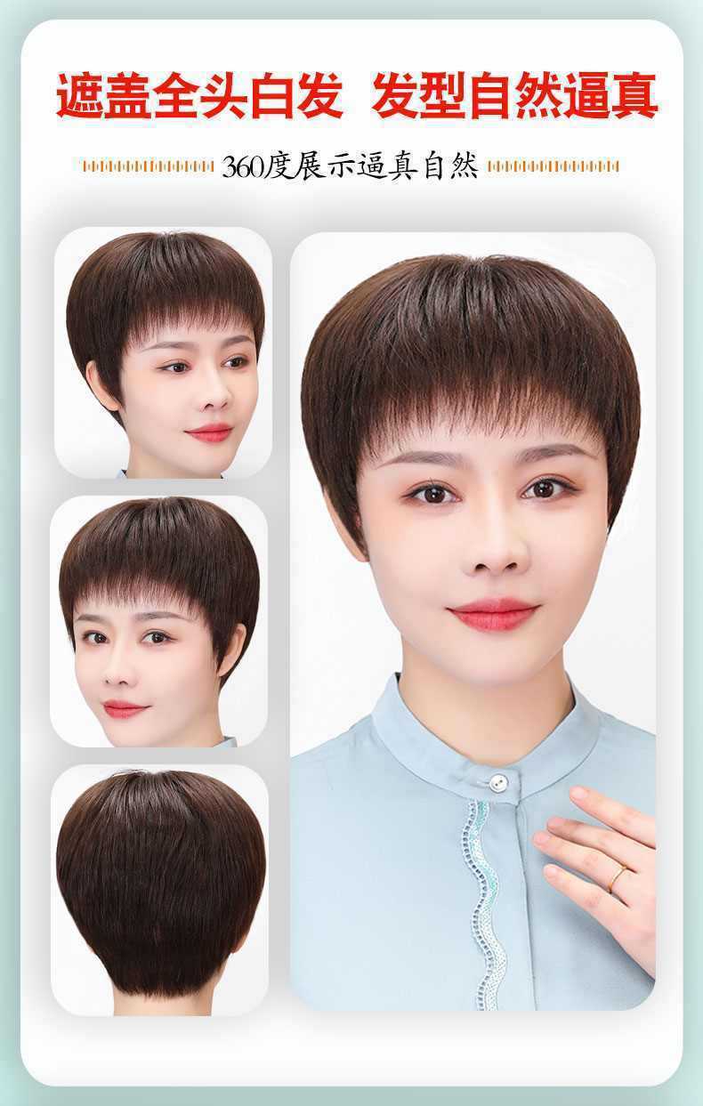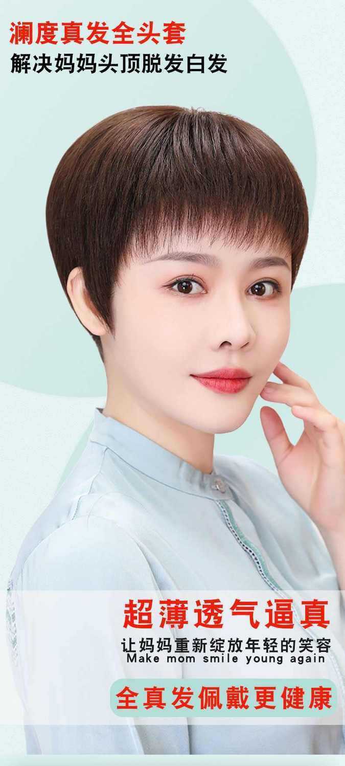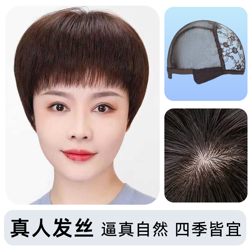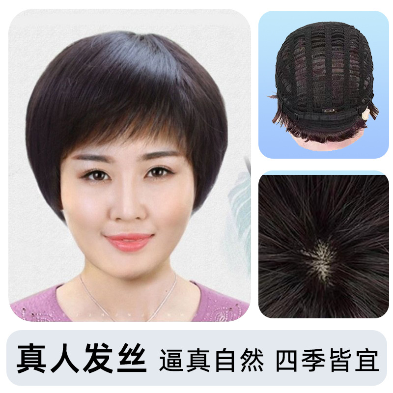 全手织全真发中老年短直发真发全头套假头发妈妈真人发丝发套透气