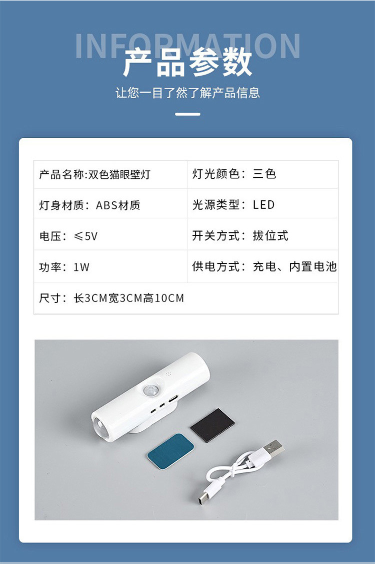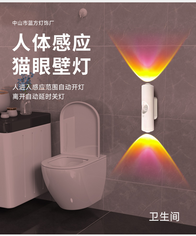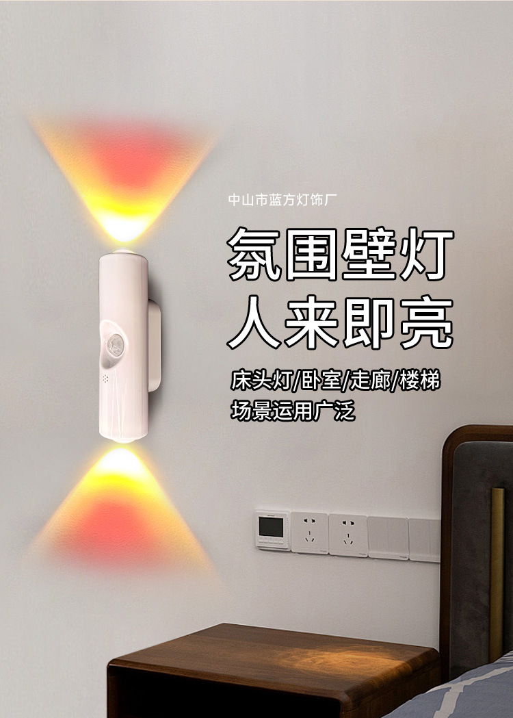 LED灯双猫眼壁灯智能人体感应充电式氛围小夜灯橱柜过道起夜家居
