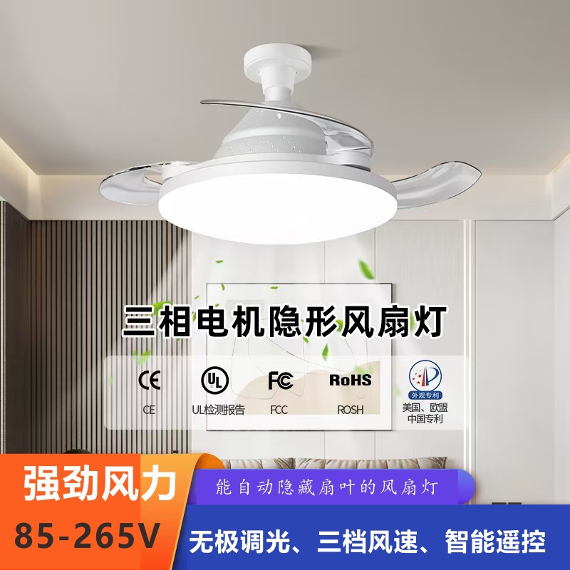 新型e27ねじ口無人機式ファンランプ家庭用寝室シャンデリア一体吊り扇静音強風ファンランプ