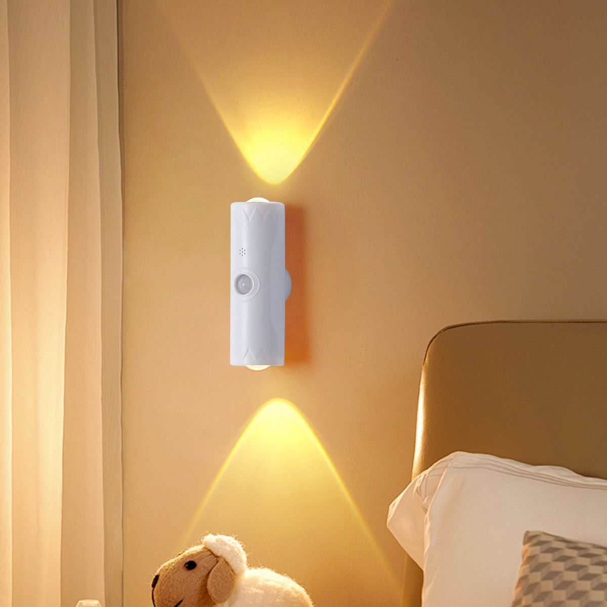 环保双猫眼氛围感应壁灯人来灯亮人走灯灭卧室走廊楼梯床头小夜灯
