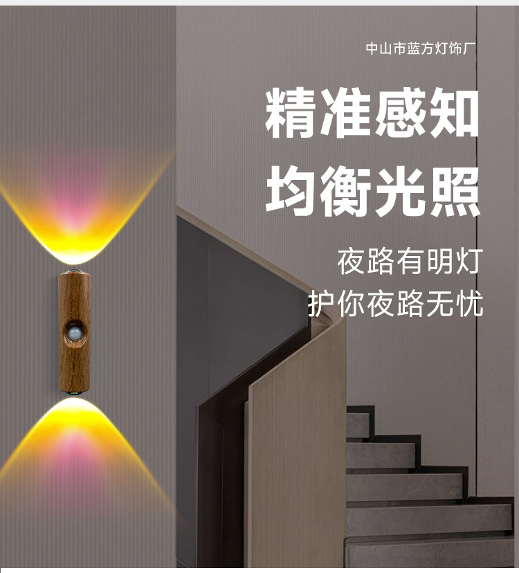 インテリジェント人体センサーナイトライト LED スマートホーム充電式アンビエントライトホーム廊下通路木製センサー