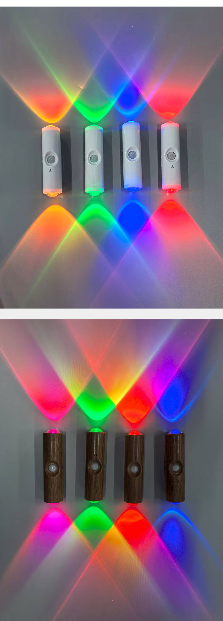 双头猫眼壁灯RGB氛围灯小夜灯床头灯七彩渐变磁吸感应灯人来即亮