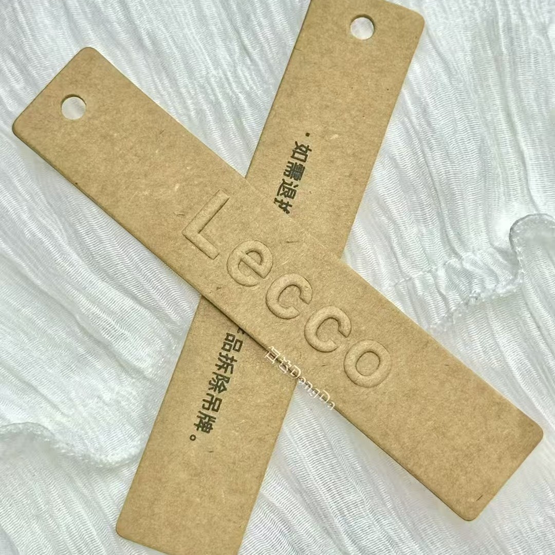 衣料品クラフト紙タグ、カスタムメイドのエンボス加工タグ、ウッドカラークラフト紙タグ、カスタムメイドのエンボス加工タグ