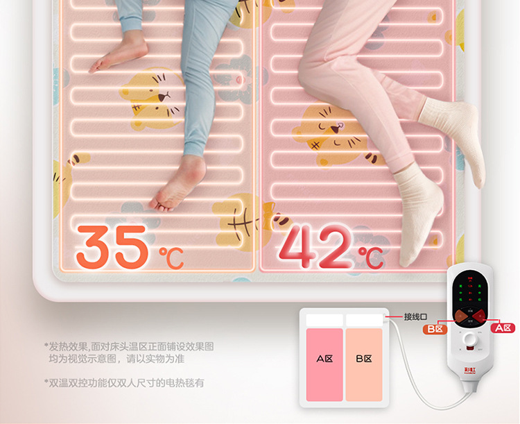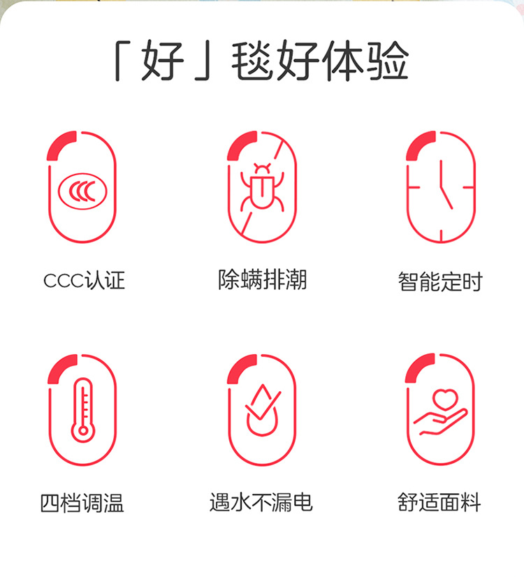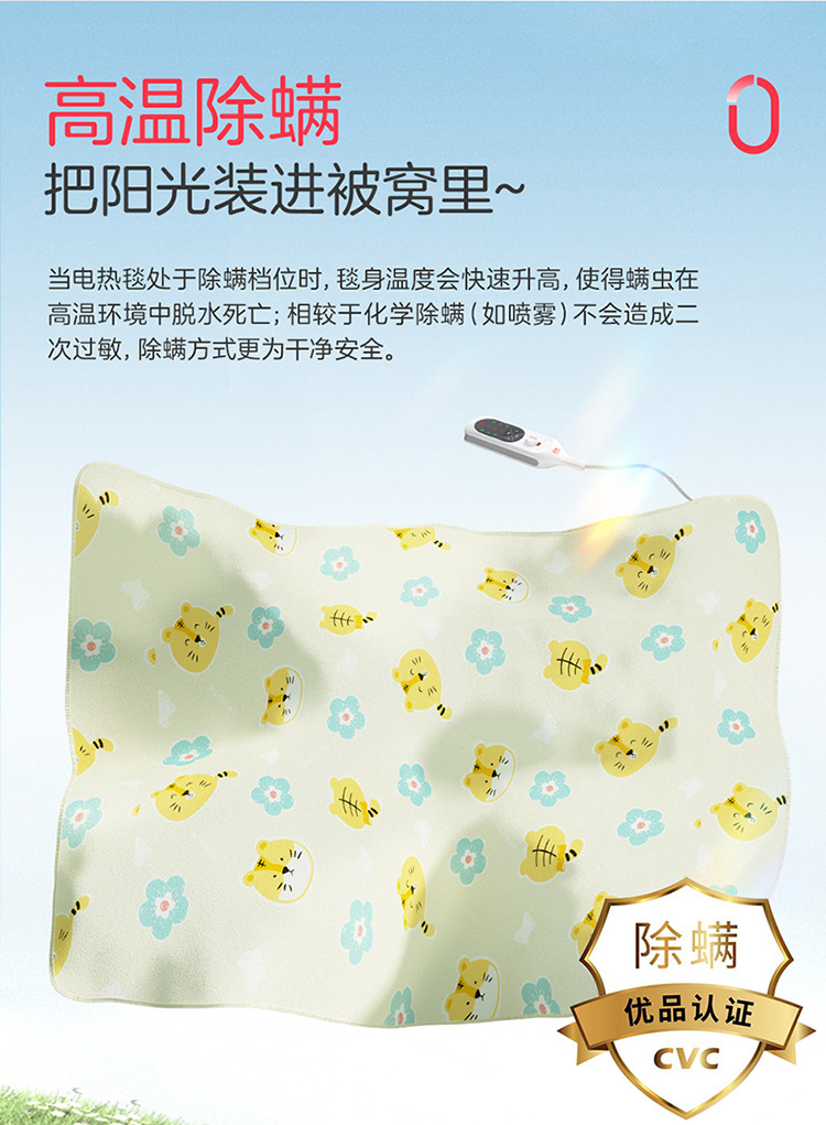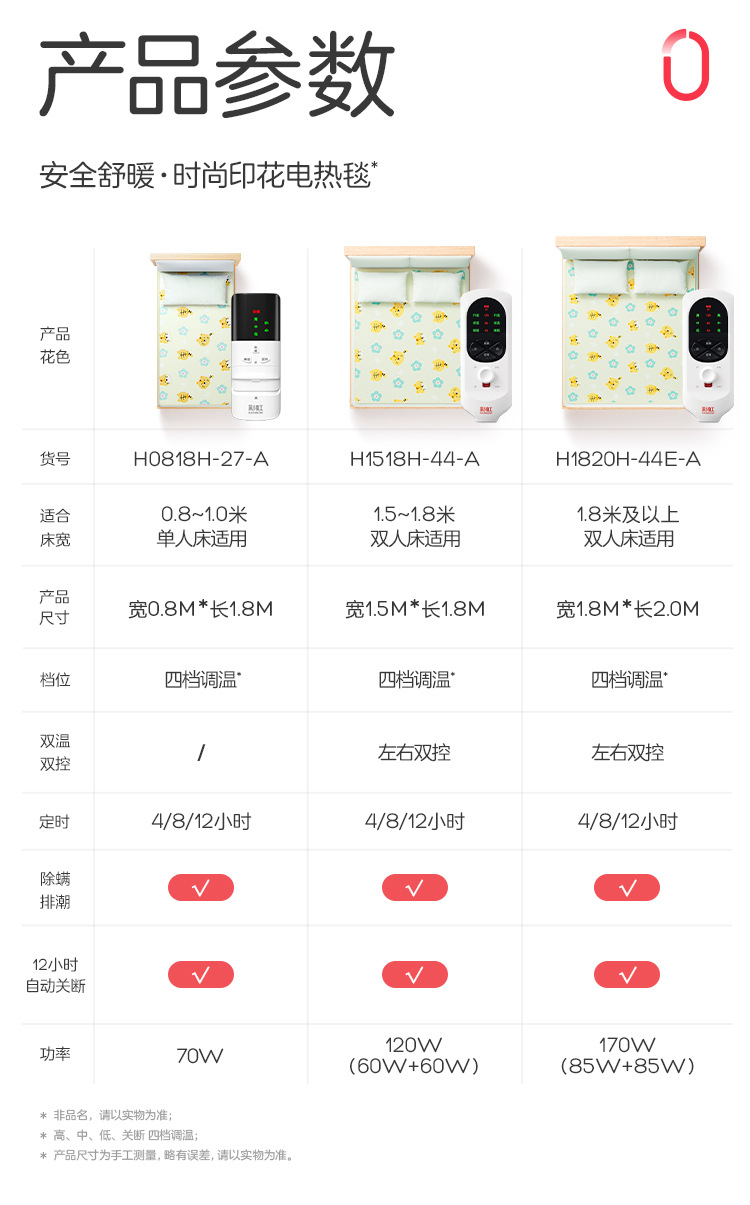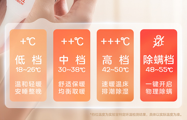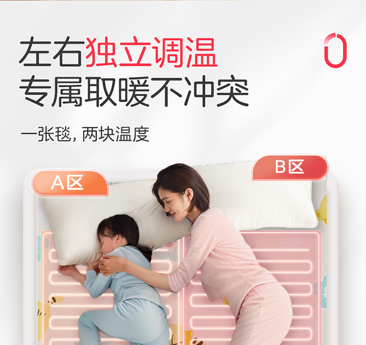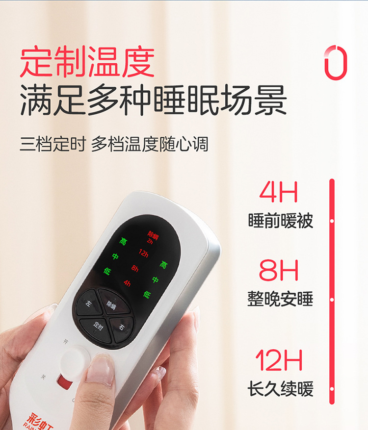 彩虹(Rainbow)电热毯五档调控左右控温智能定时除螨电热毯