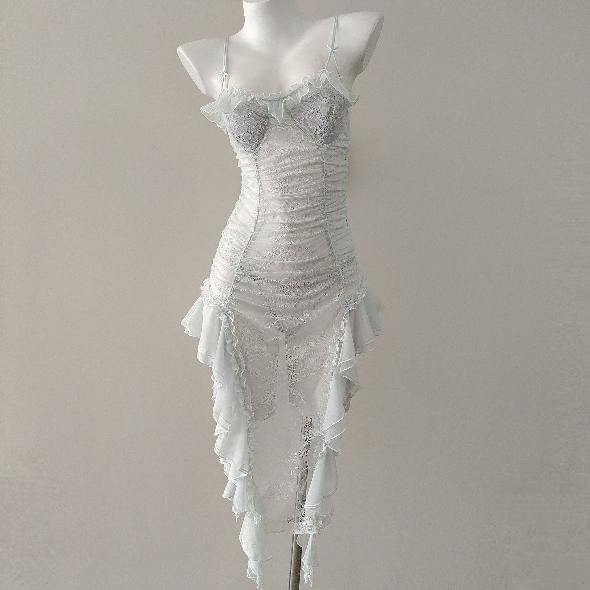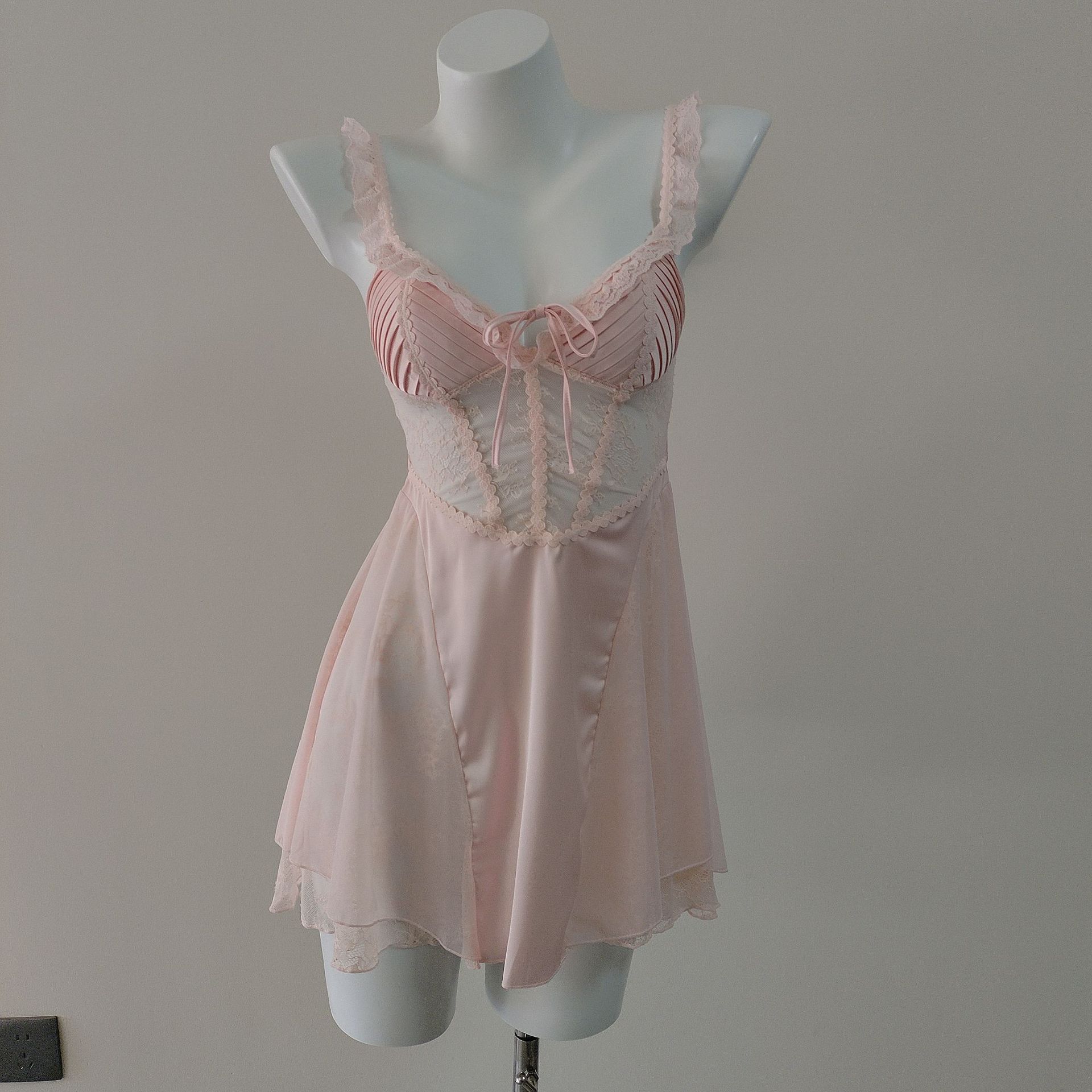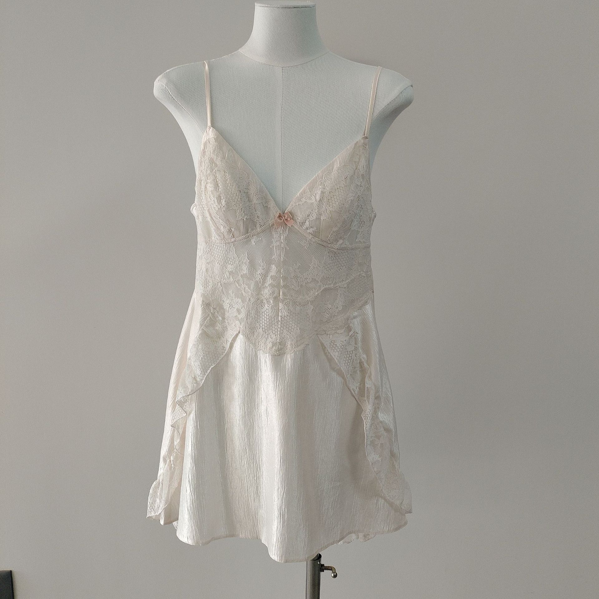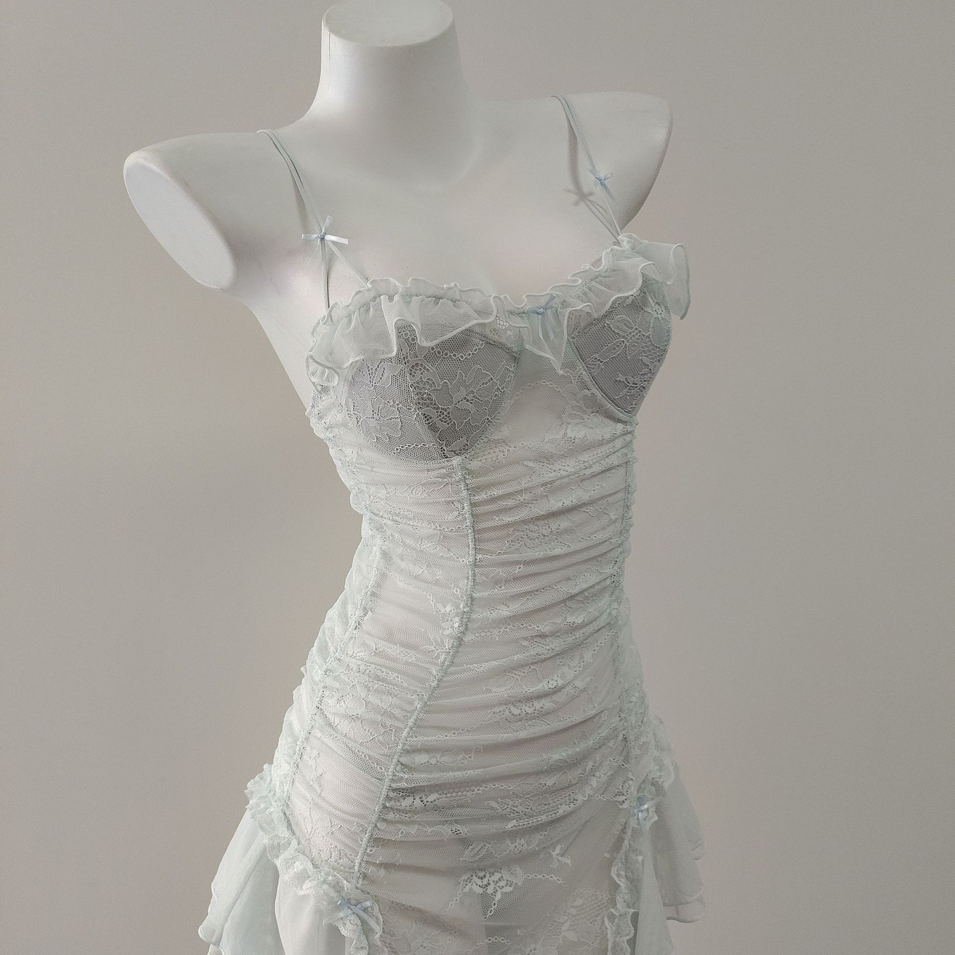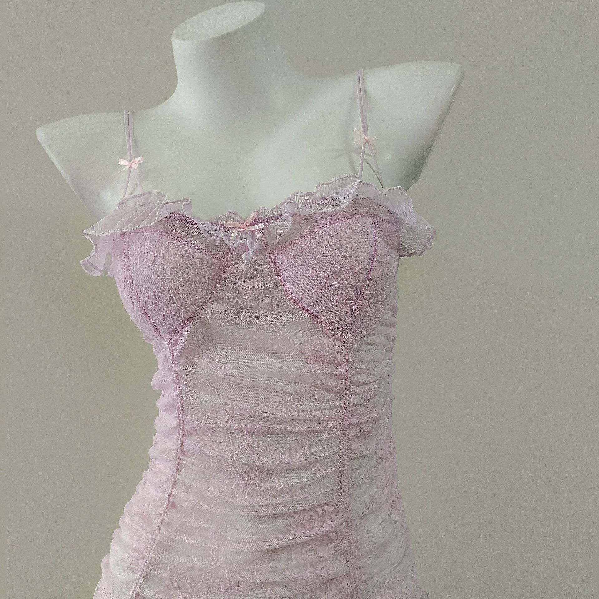 2026新款蕾丝花边拼接网纱吊带睡裙女冰丝纯欲高级感修身收腰睡衣