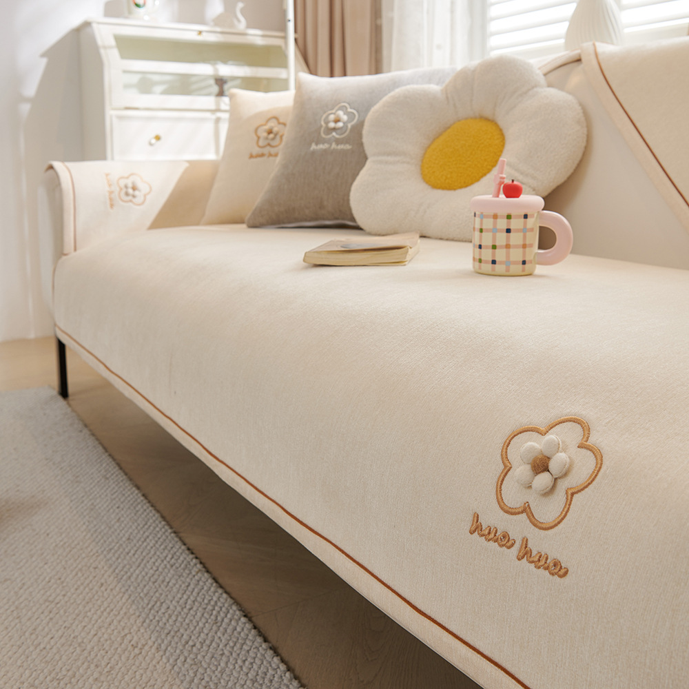 花刺繍シェニールソファクッションオールシーズン 2025 新しいソファクッション固定滑り止めカバー布