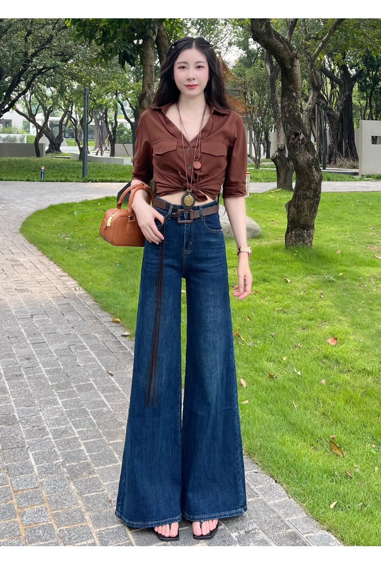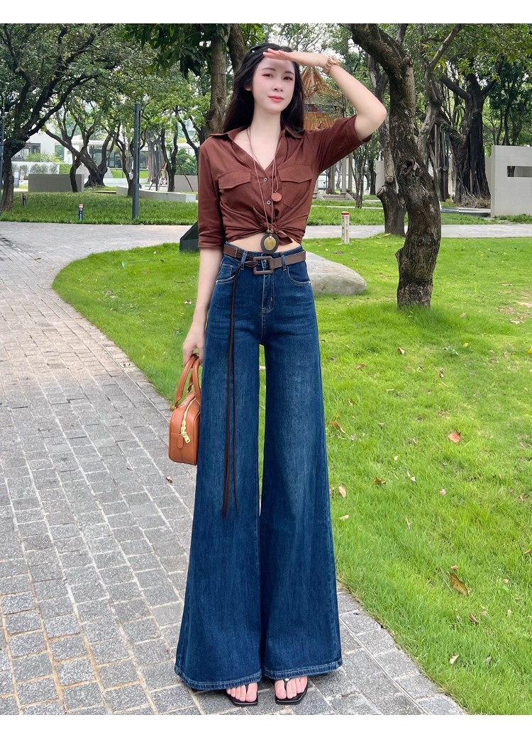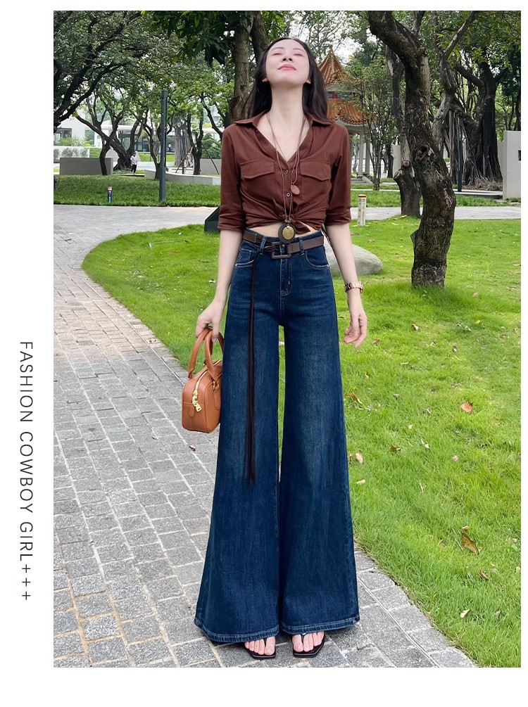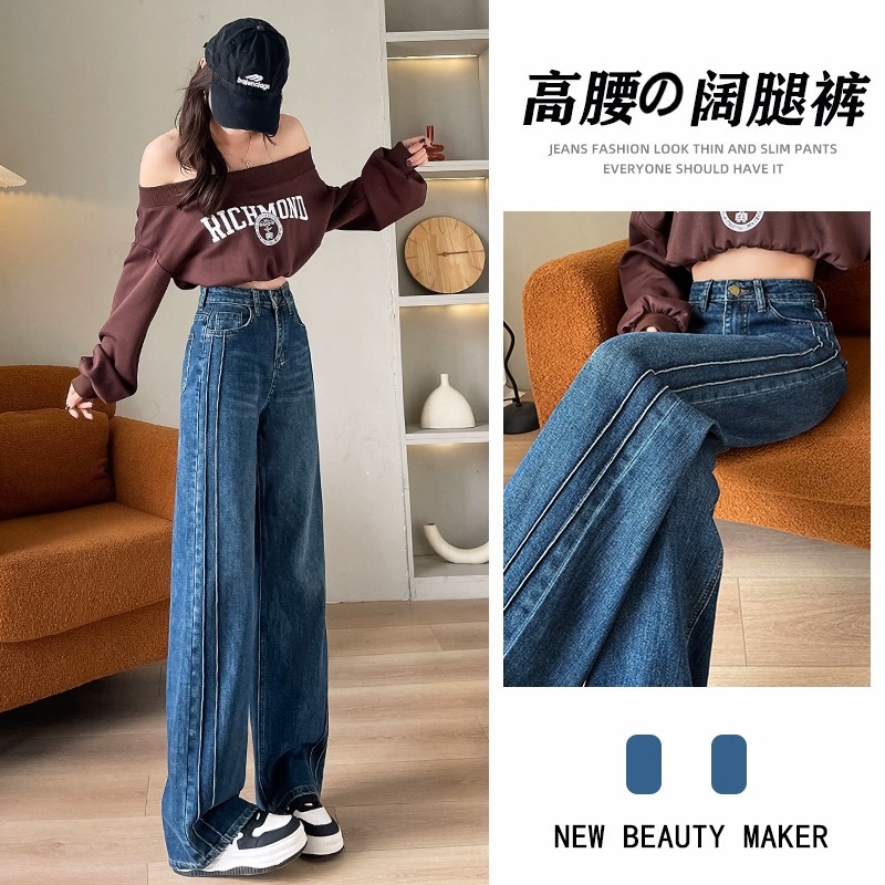 丹寧藍広脚ジーンズ女性2025年に流行した新型の高腰弾力性がゆるい直筒が痩せている春夏モデル