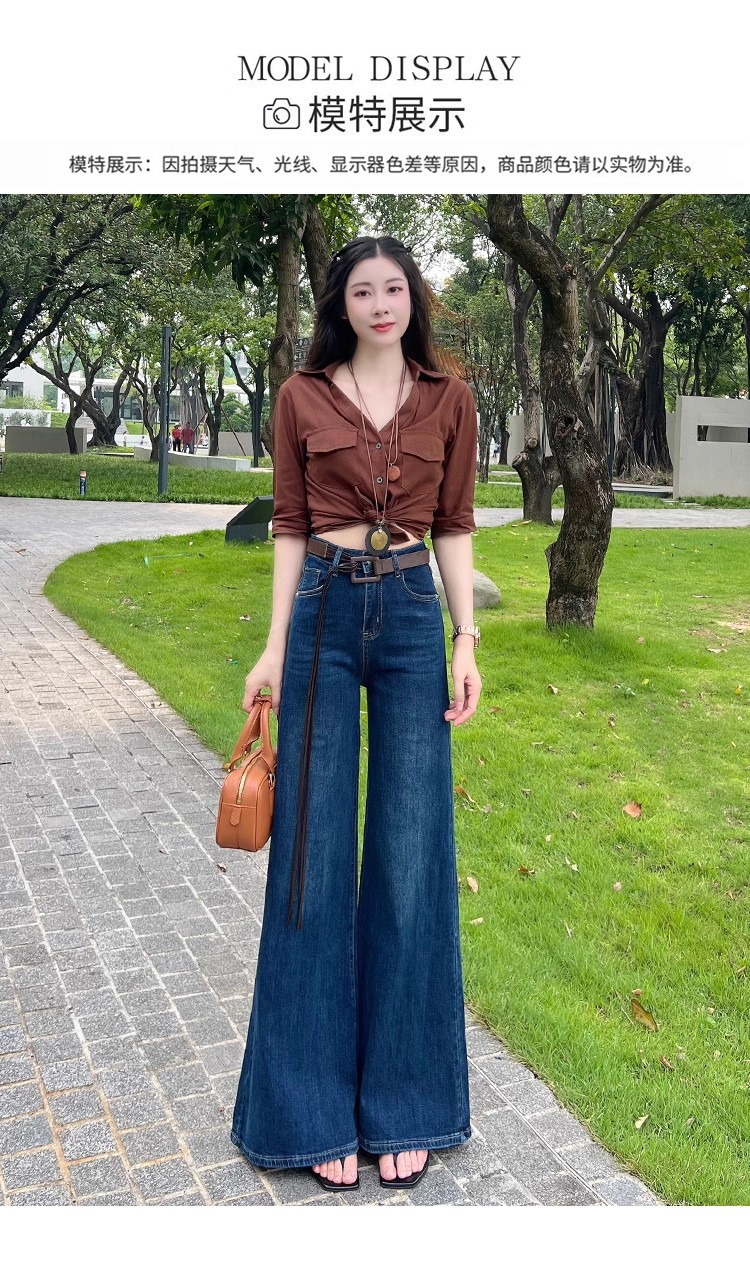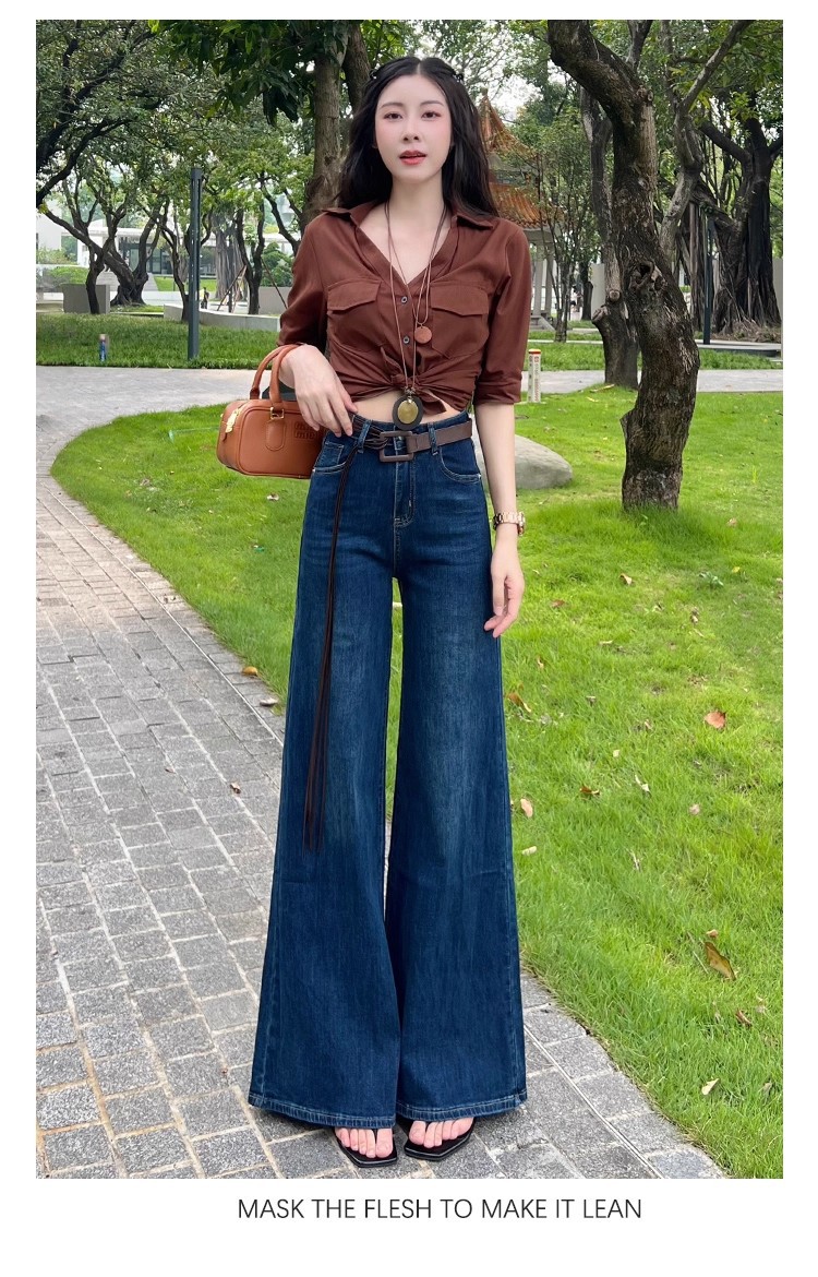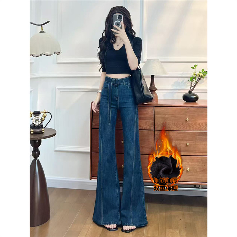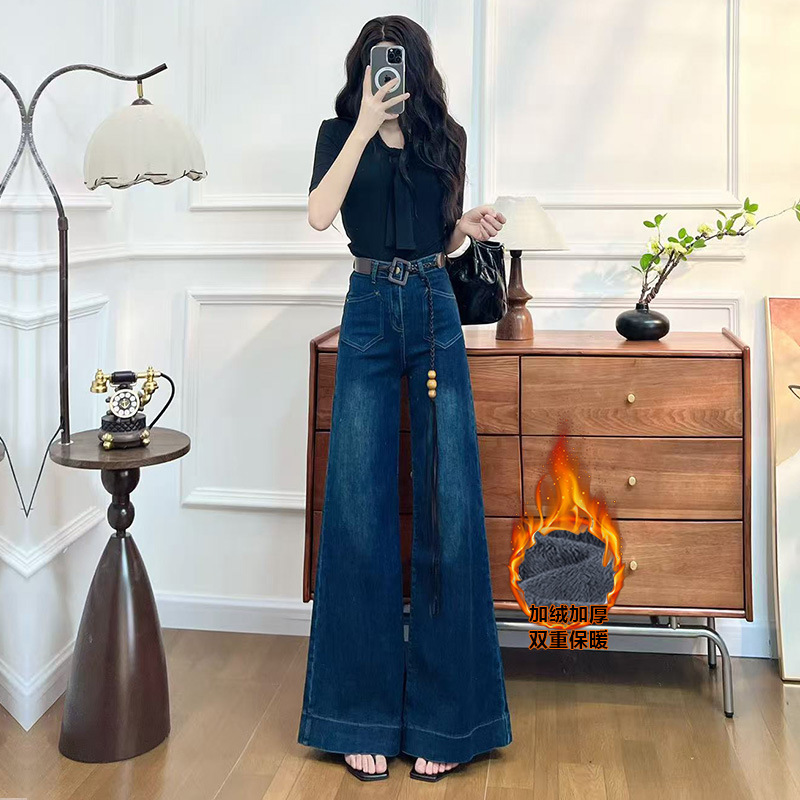 加绒阔腿喇叭牛仔裤女秋冬季新款显瘦弹力辣妹慵懒设计感拖地裤子
