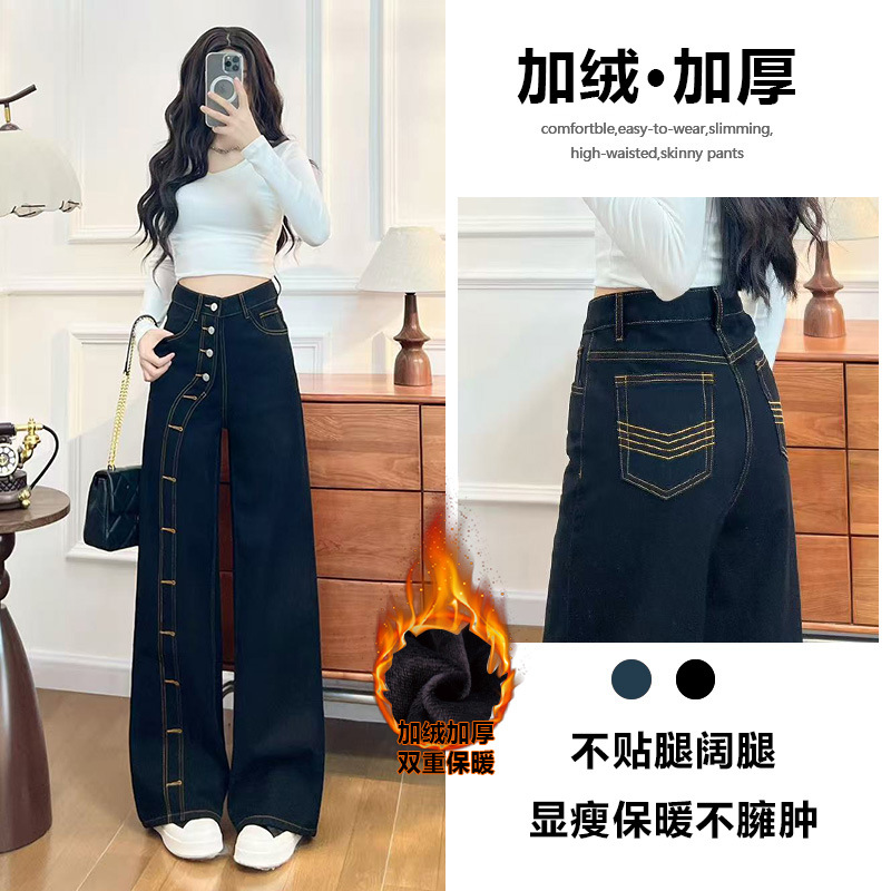 加绒阔腿牛仔裤女秋冬季2025新款气质潮流显瘦时髦网红高级直筒裤