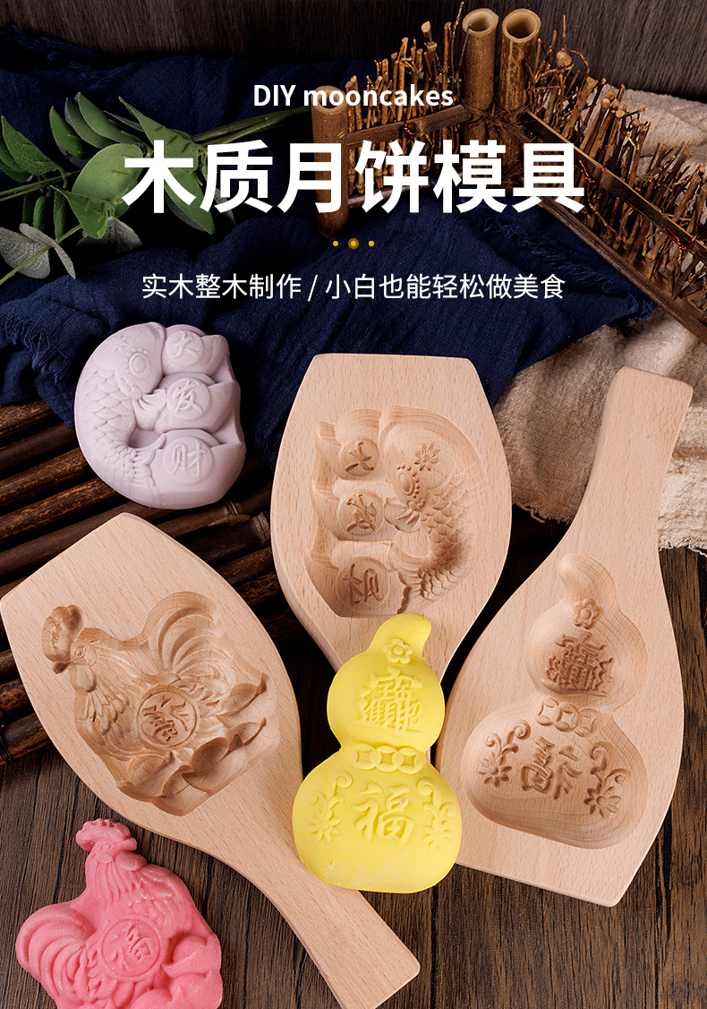 新款木制模具实木模饼干青团绿豆糕点心冰皮木质月饼模具面食烘焙