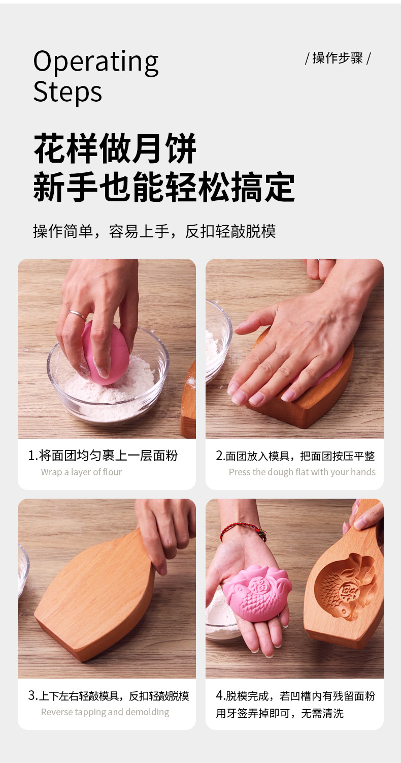 Diy新型氷皮月餅金型木製麺模様緑豆餅菓子漫画蒸しマントー家庭用金型