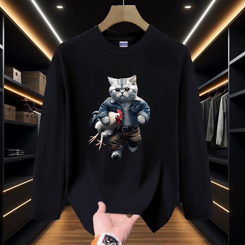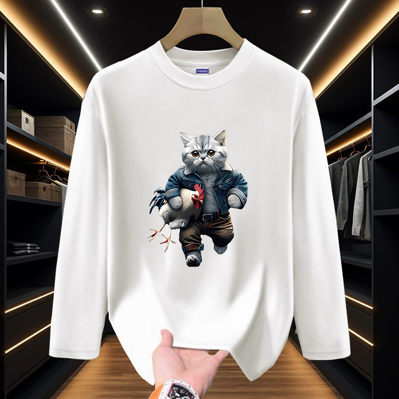 重磅纯棉长袖t恤男生秋季潮牌大码打底衫动漫印花内搭宽松打底衫