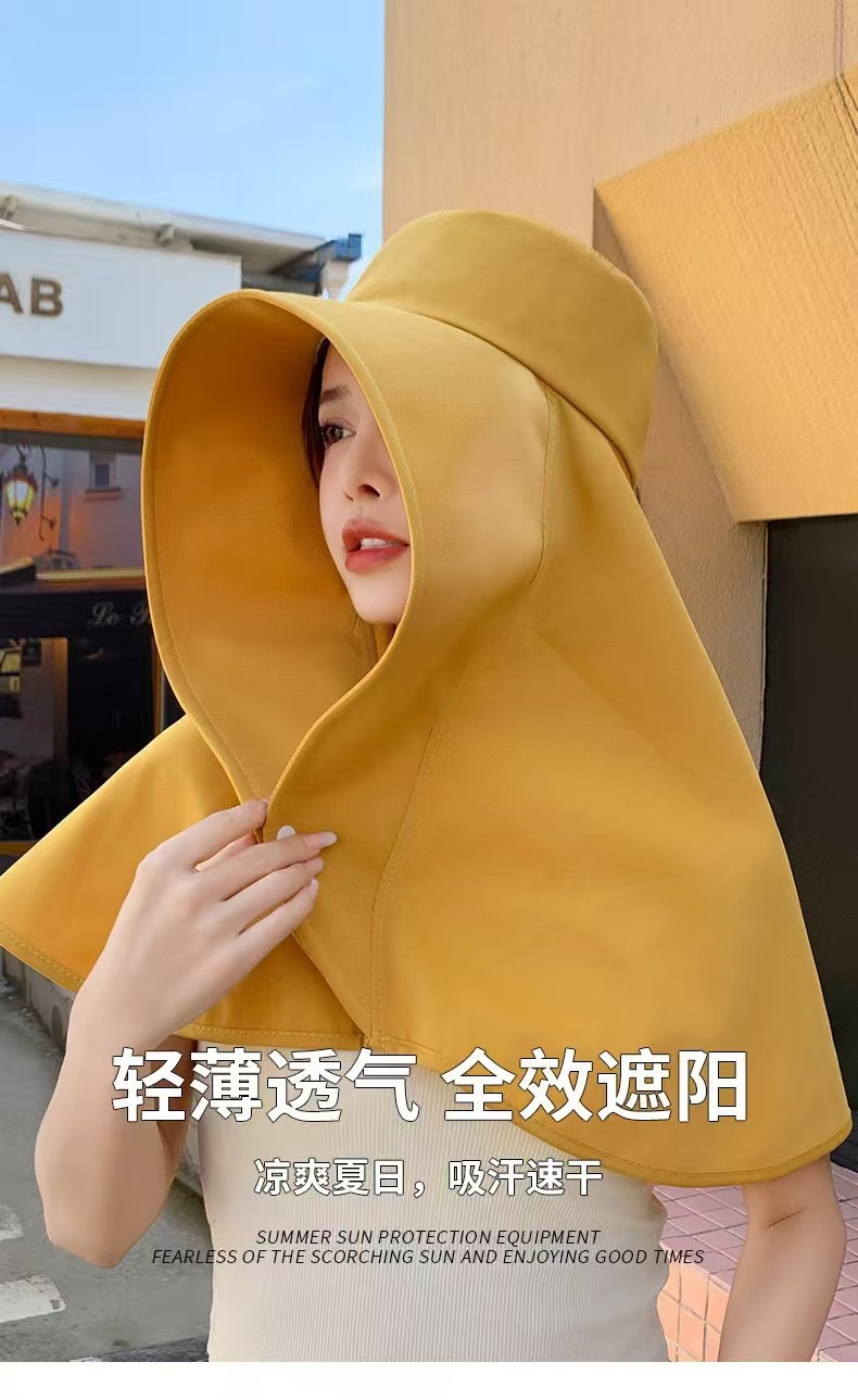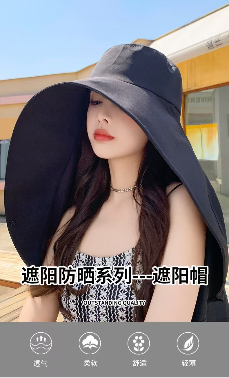 夏季女防晒遮阳帽子防紫外线大帽檐遮脸帽子面罩护颈护肩跨境外贸