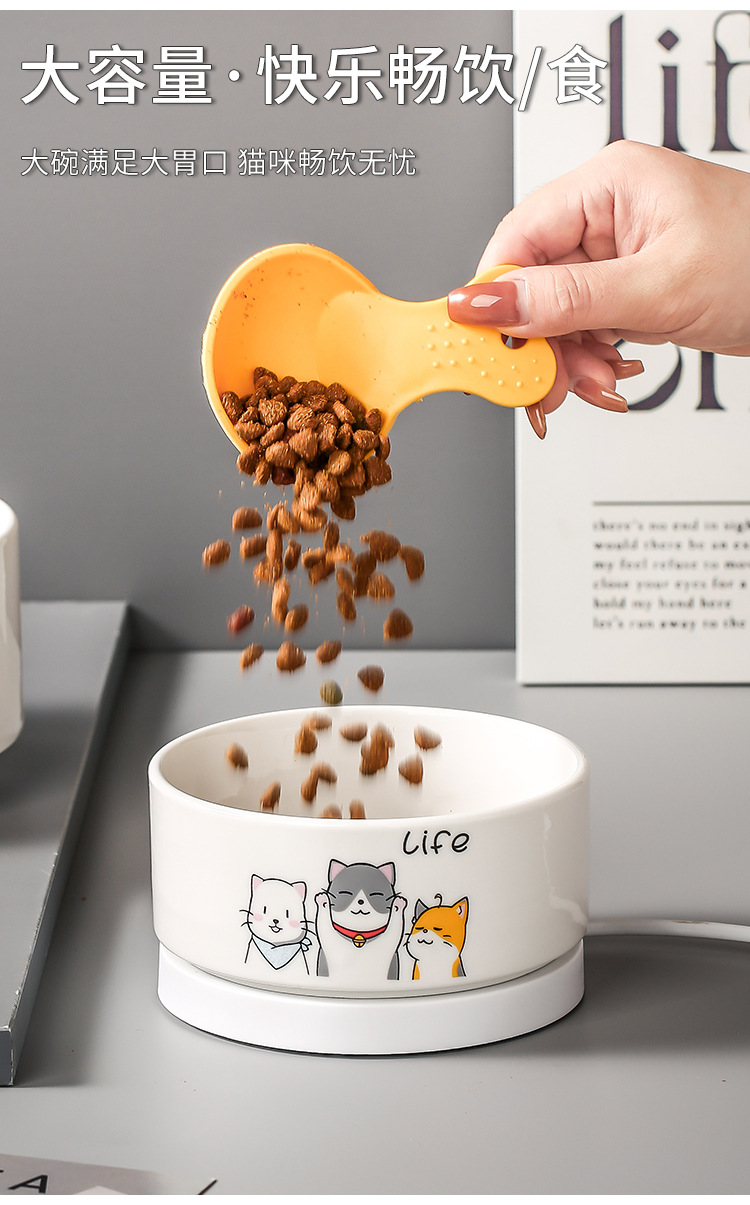 陶瓷冬天加热恒温喝水饮水机猫碗防打翻不黑下巴酸奶机宠物猫食盆