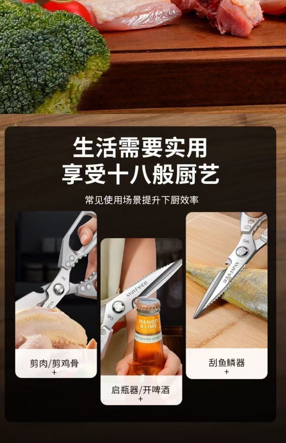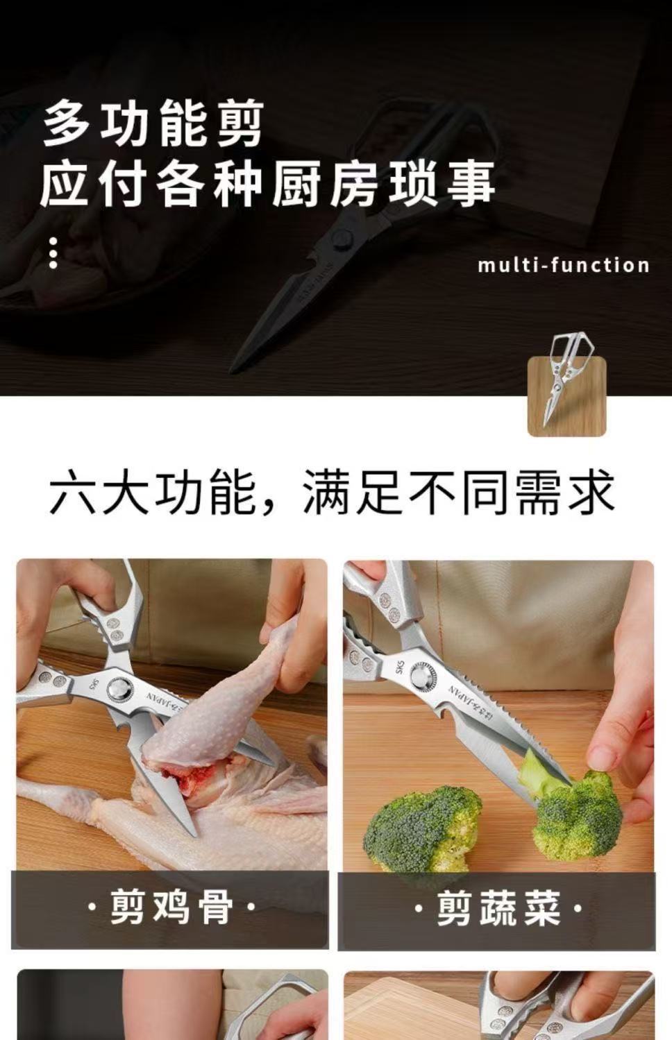 原装多功能剪子专用厨房剪刀强力食品级杀鱼烤肉鸡骨家用不锈钢