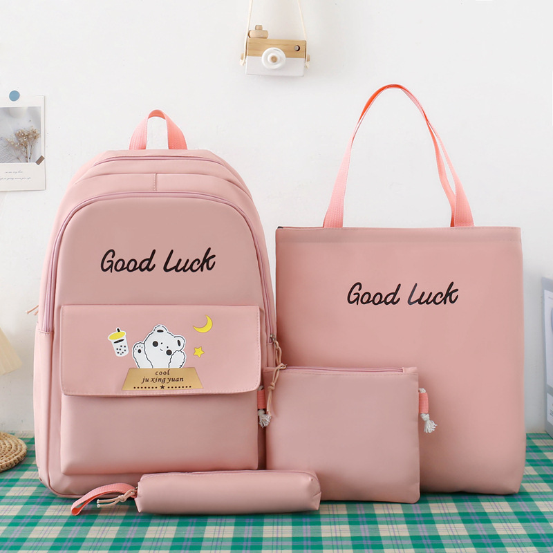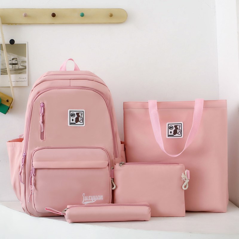 新品小学生カバンレディース軽量大容量中学生キャンパスリュックサック4点セットカジュアルリュックサックバガース