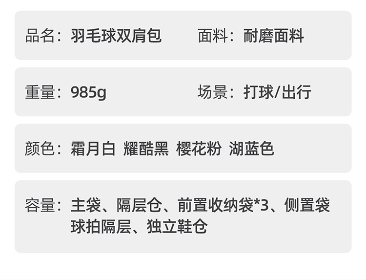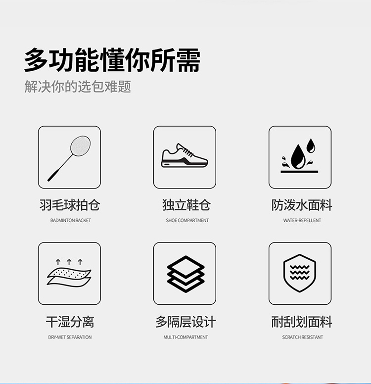2025新款大容量户外运动羽毛球双肩背书包大学生休闲旅行运动背包