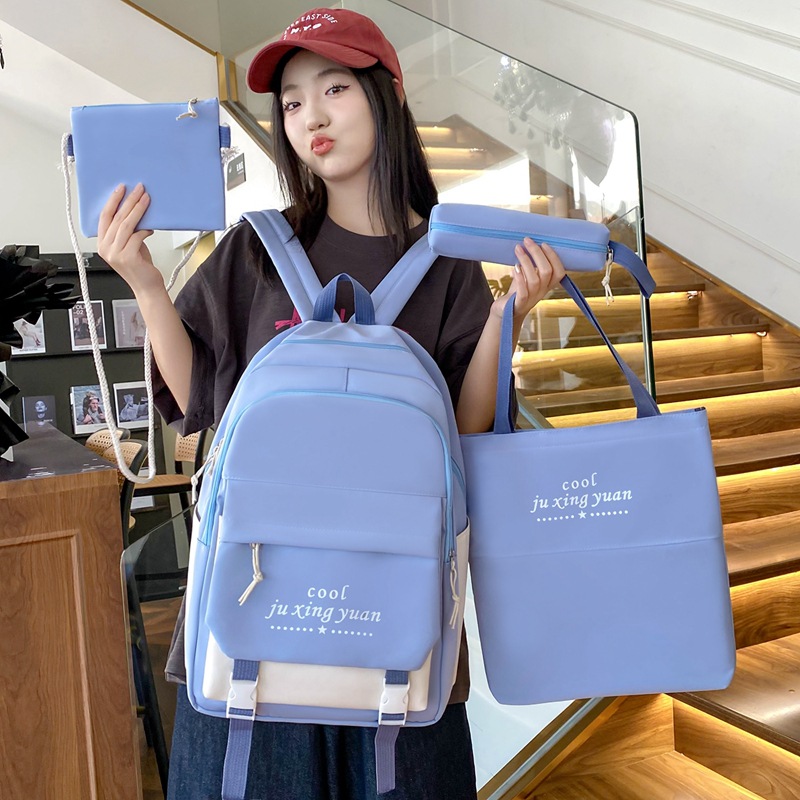 2024新型大容量四点セット学生カバンファッションレジャー旅行リュックサック純色防水リュックサック