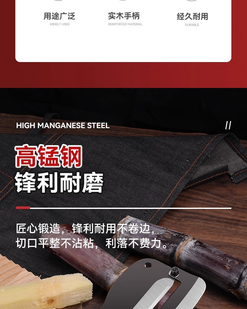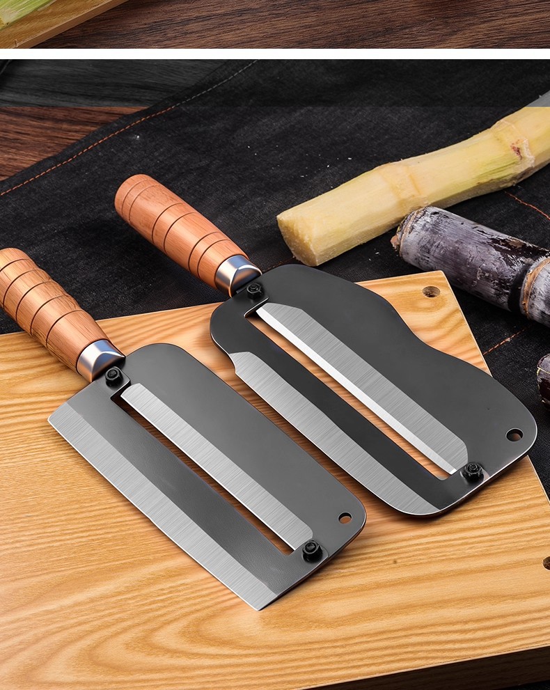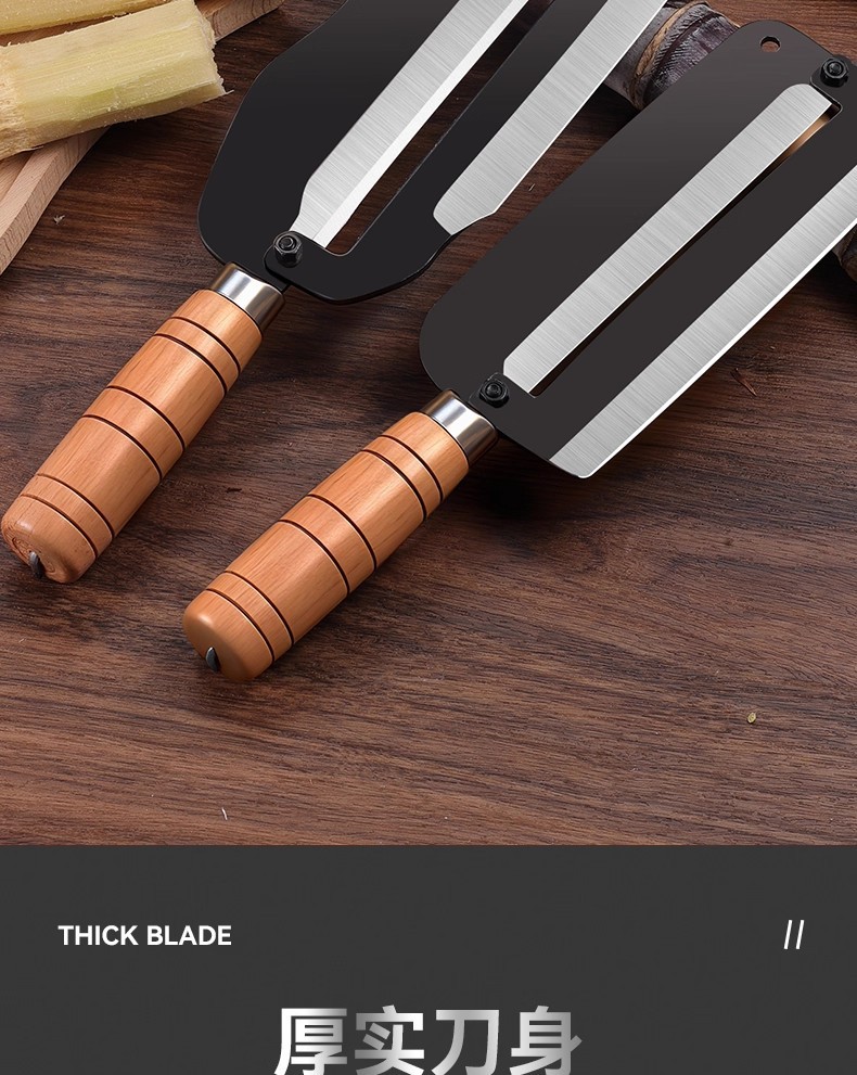 多功能锰钢加厚大号防滑实木甘蔗刀 双刃两用可削可砍削皮甘蔗刀