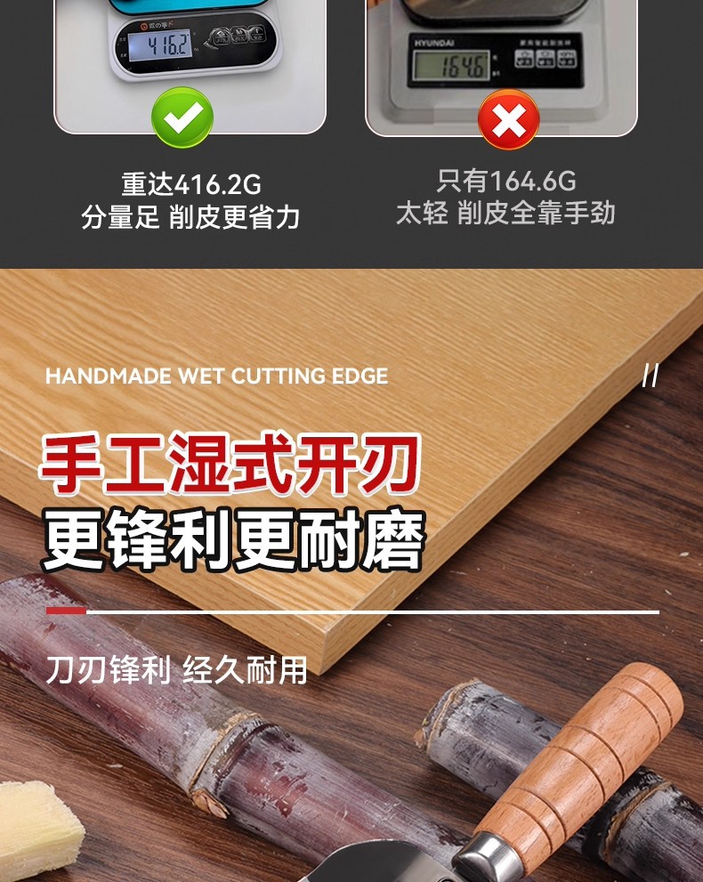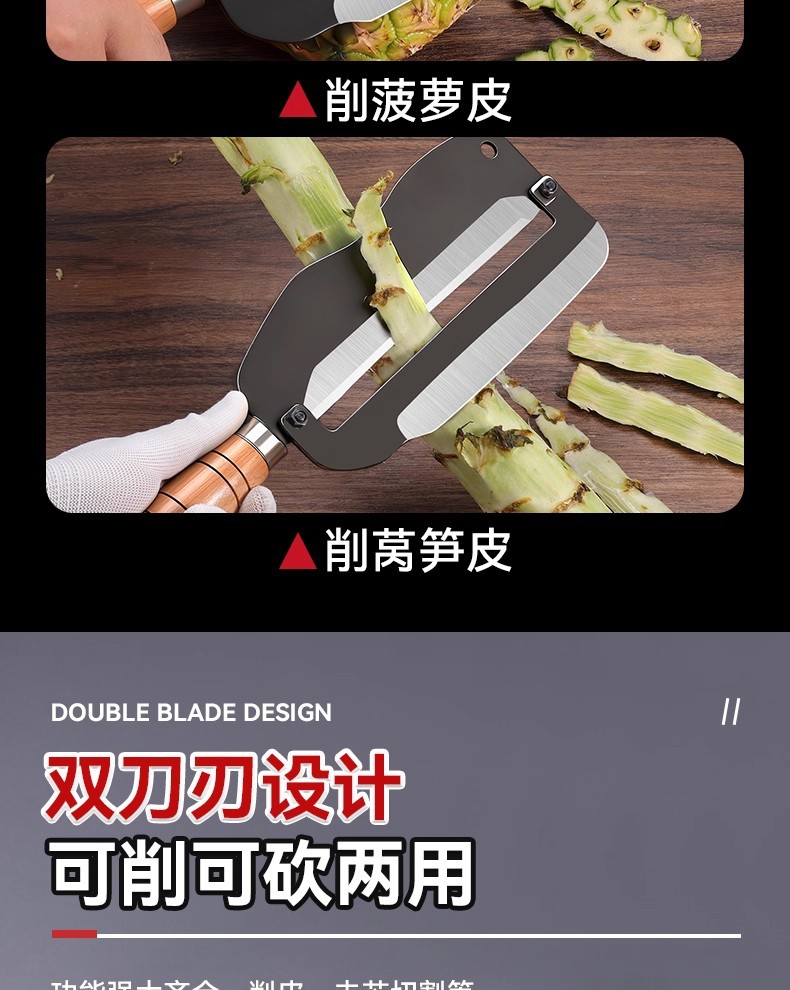 不锈钢甘蔗刀削菠萝刀削甘蔗皮专用两用砍剥刮皮刀木柄防滑刨皮刀