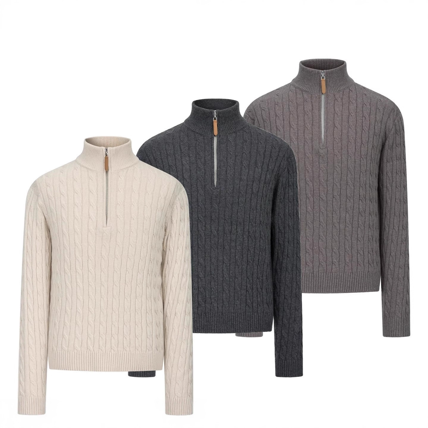 半拉链针织衫毛衣男麻花立领秋冬外搭轻奢风商务休闲外贸跨境批发