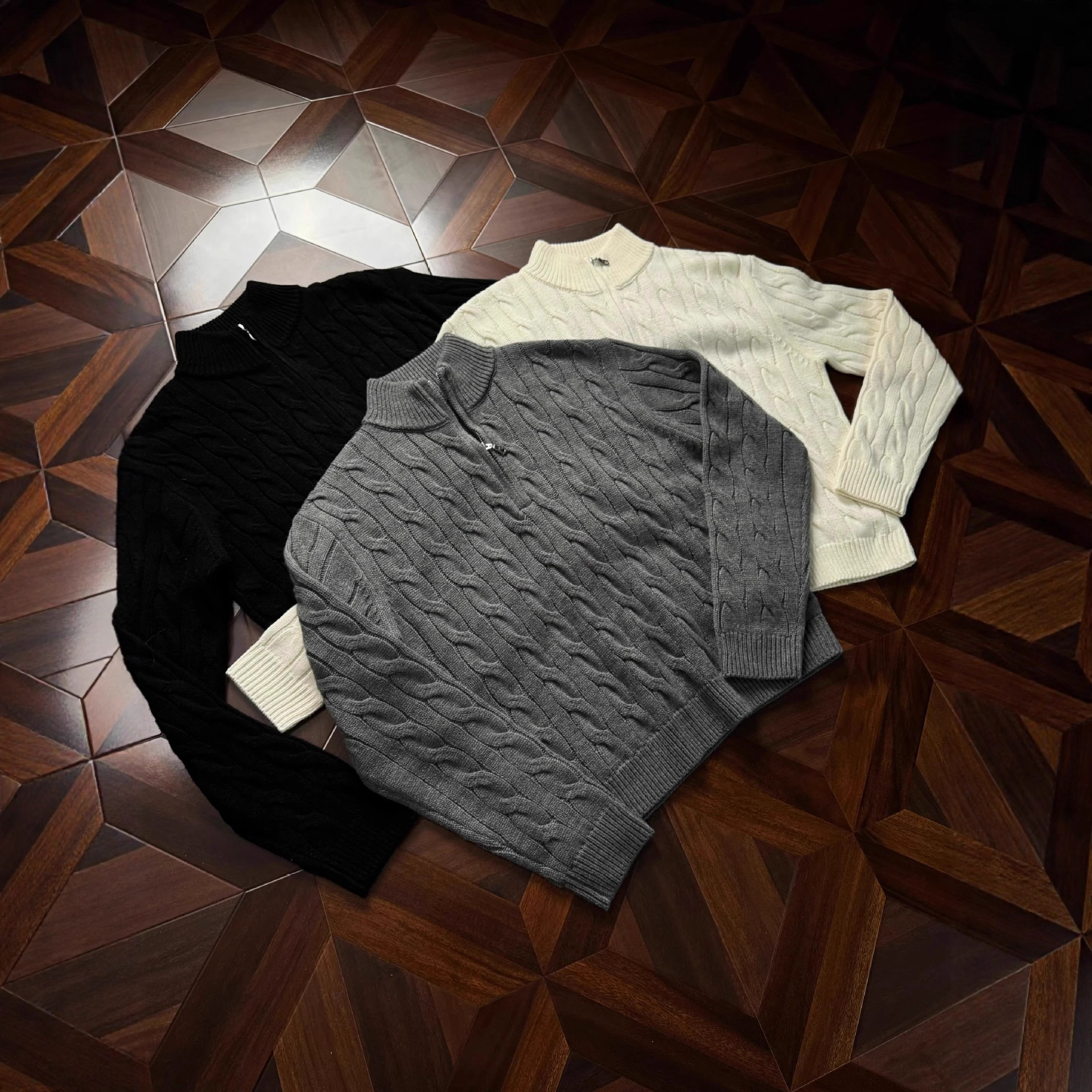 cleanfit老钱风毛衣秋冬季慵懒麻花纹肌理感半拉链毛衣内搭针织衫