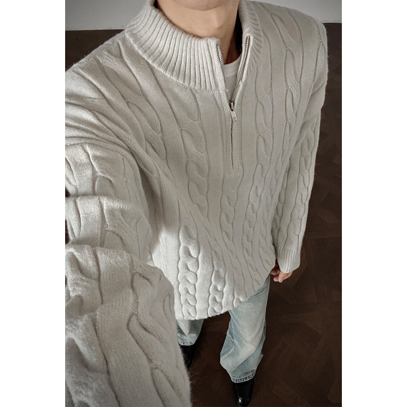 zozoforest半拉链粗麻花立领毛衣男冬季复古老钱风内搭针织衫外套