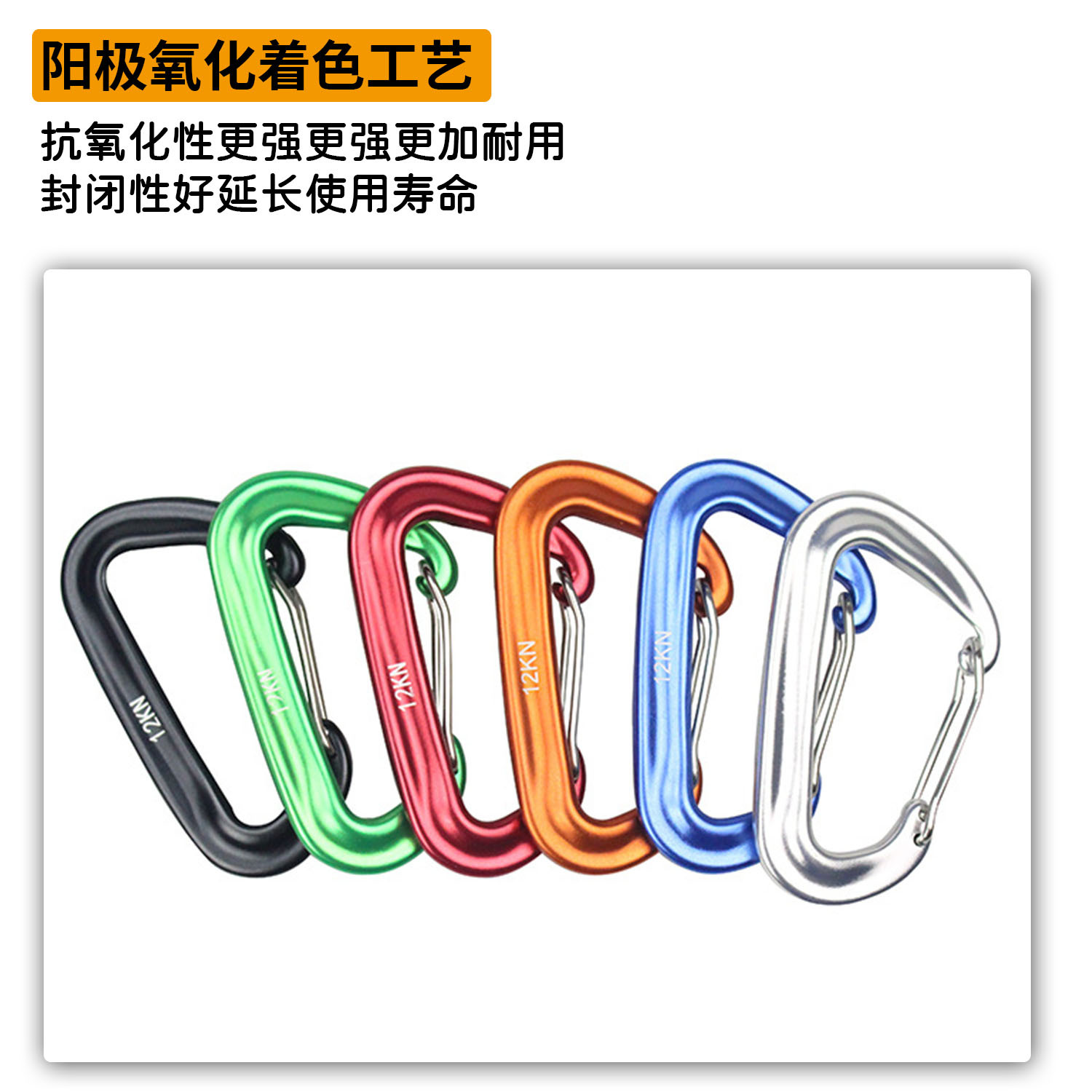 品名:7075航空铝12/25KN攀岩攀登快挂D型登山扣吊床瑜伽高强度扣弹簧钩
