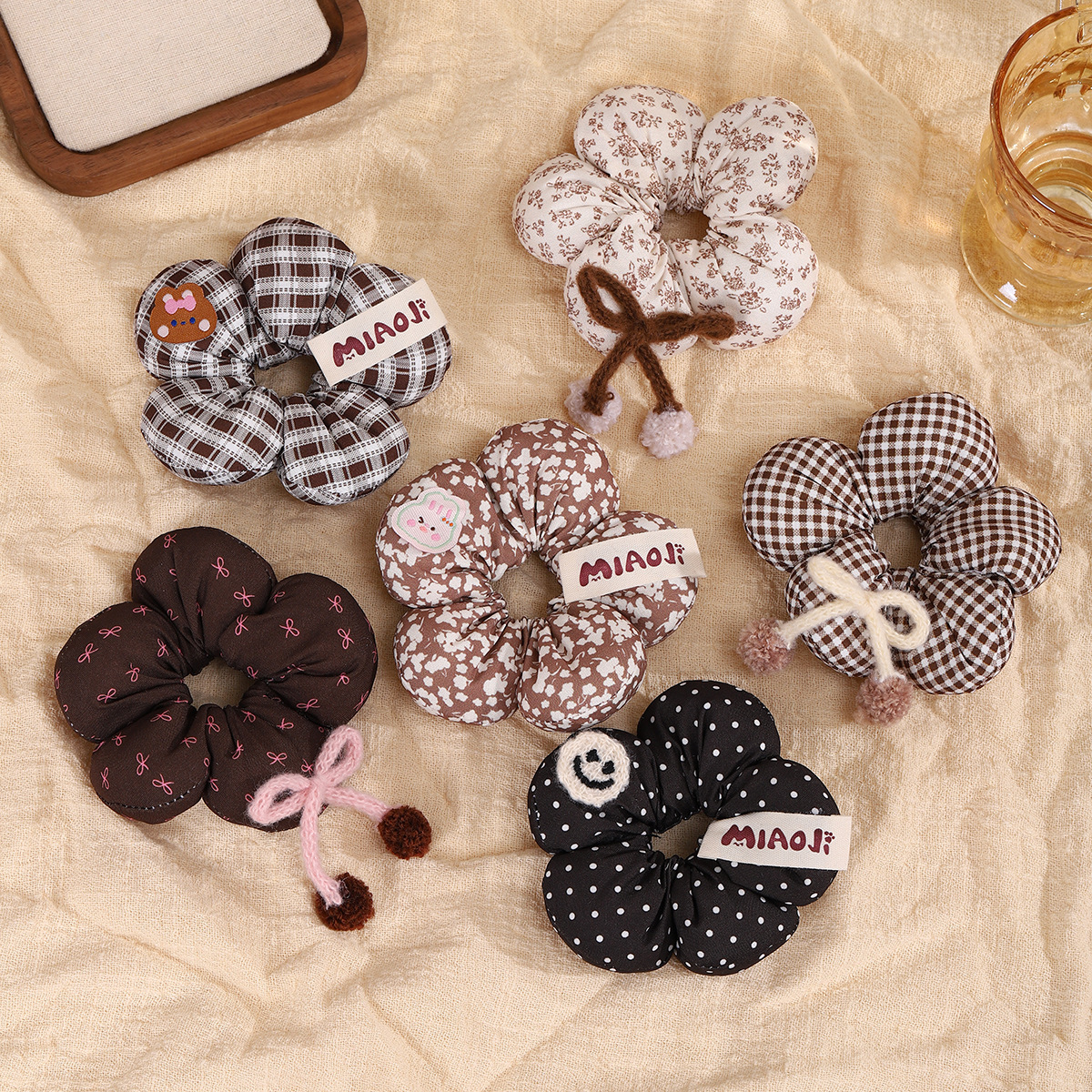 秋冬咖色系碎花甜美花朵小肠发圈儿童宝宝丸子头发绳马尾皮筋发饰