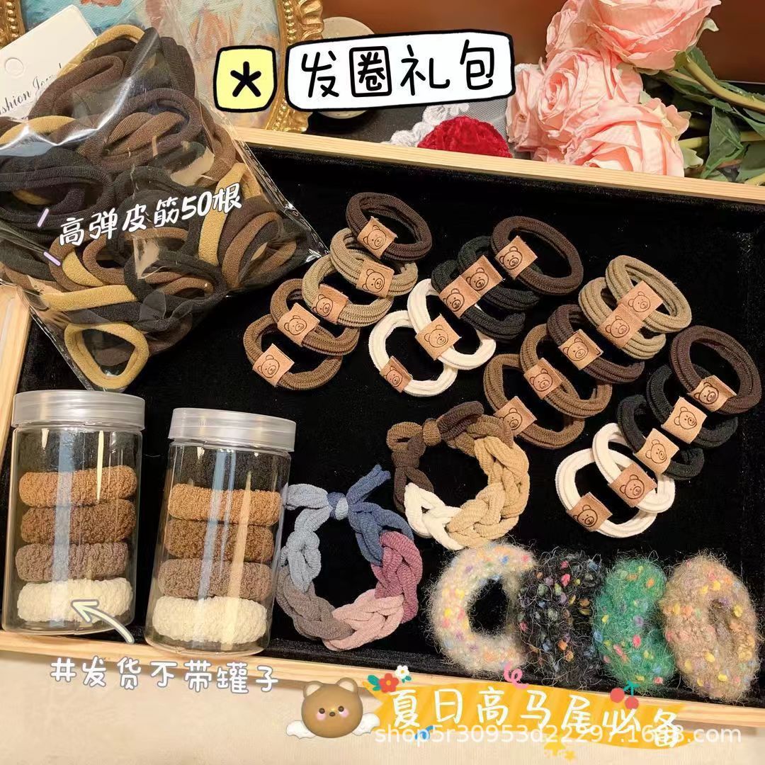 2025新款文艺彩色系扎发头绳不伤发高颜值马尾皮筋小清新头饰套装