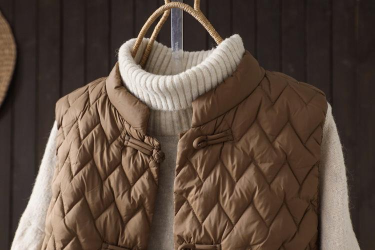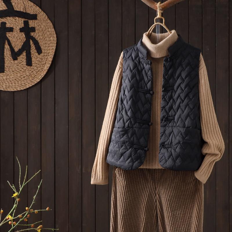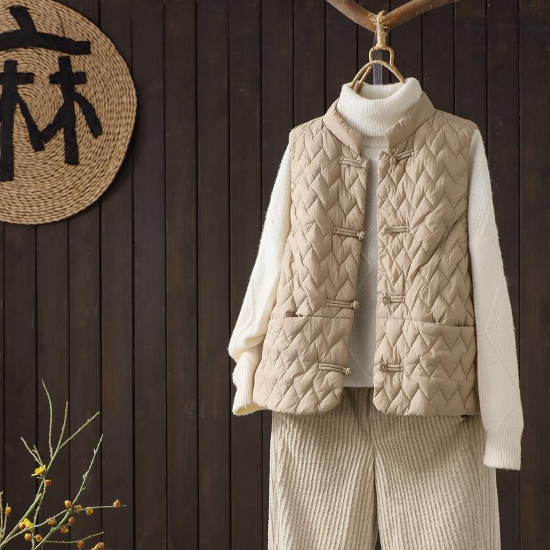 一线专柜轻便保暖压格羽绒棉马甲女冬季中式盘扣叠穿坎肩马夹外套