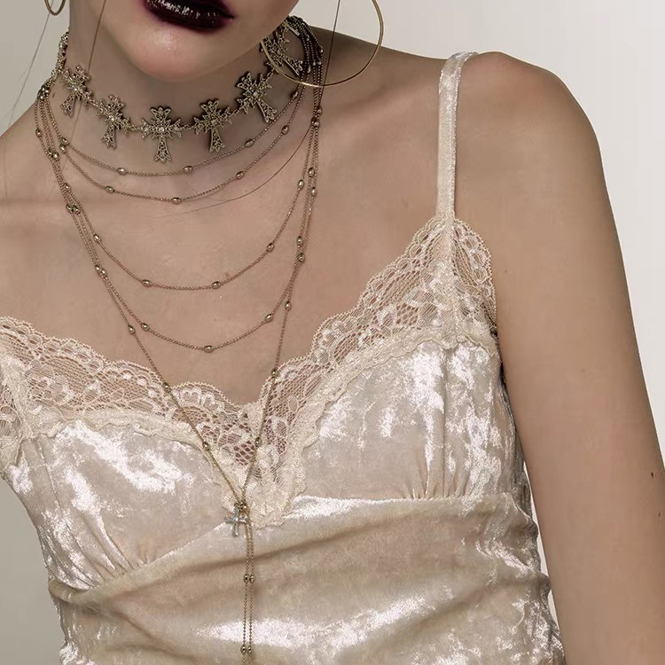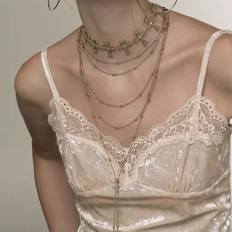 复古小众气质多层叠戴项链高级轻奢简约ins风时尚百搭十字架吊坠