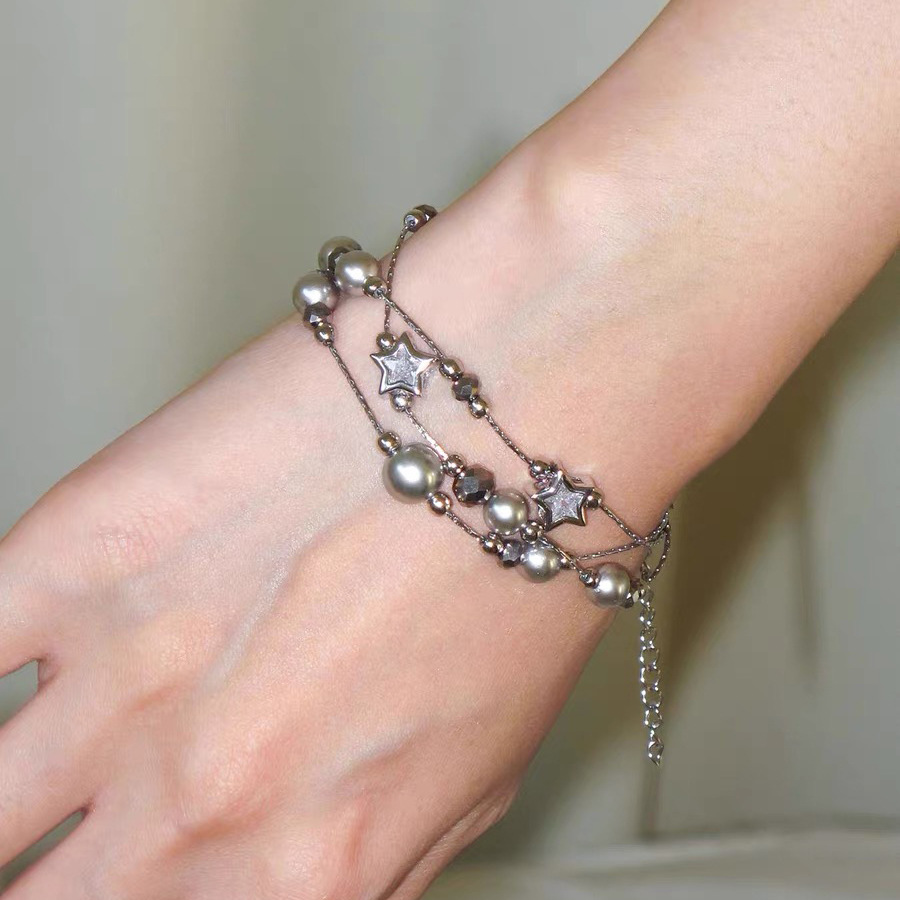 小众设计灰色珍珠满天星手链女ins个性高级感百搭多层手串