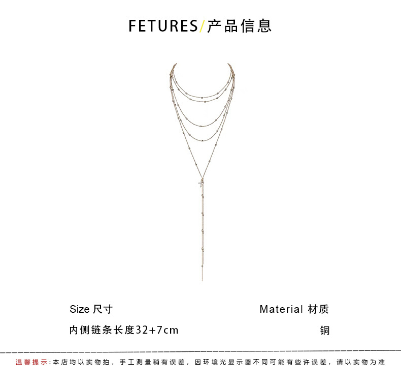 简约多层叠戴项链女款轻奢小众高级感锁骨链流苏颈链配饰毛衣链