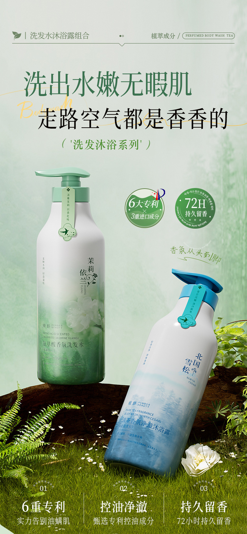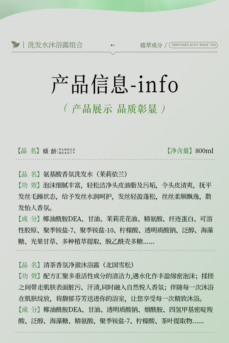 规格类型 倾龄清茶香氛净澈沐浴露(北国雪松),倾龄氨基酸香氛洗发水(茉莉依兰)