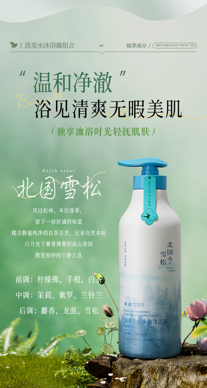 倾龄北国雪松氨基酸香氛沐浴露雪松清香净澈肌肤保湿嫩肤顺滑代发
