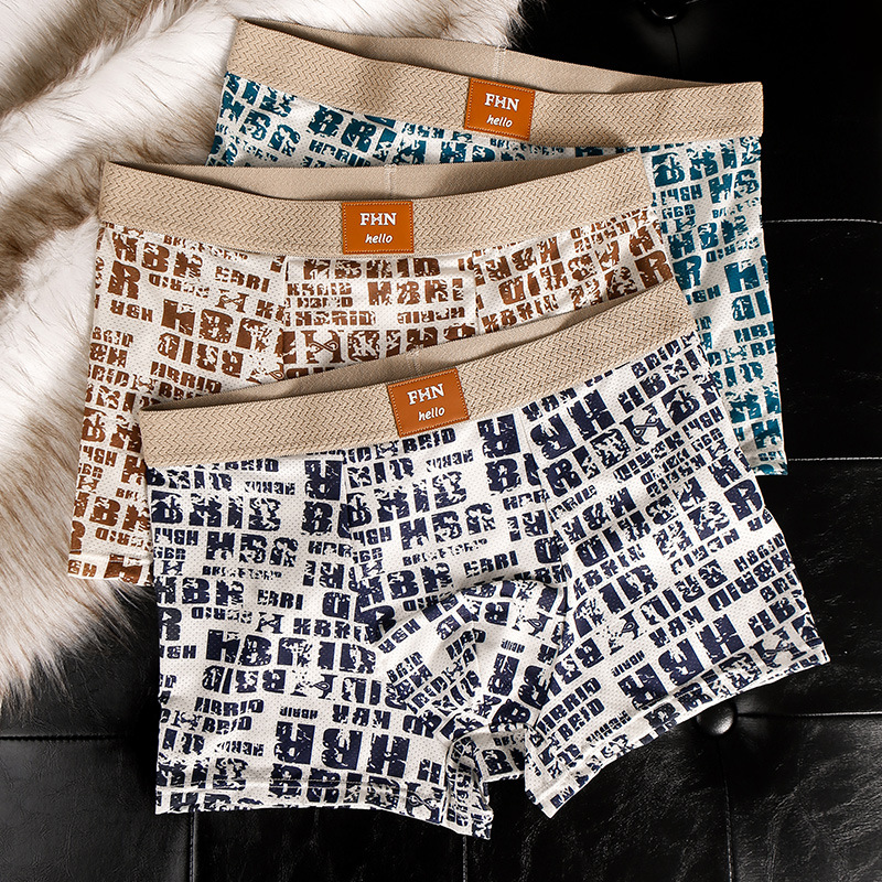 夏のファッションレタープリント快適なメッシュアイスフィールアイスシルク男の子の下着高ソフトミッドウエスト下着охck