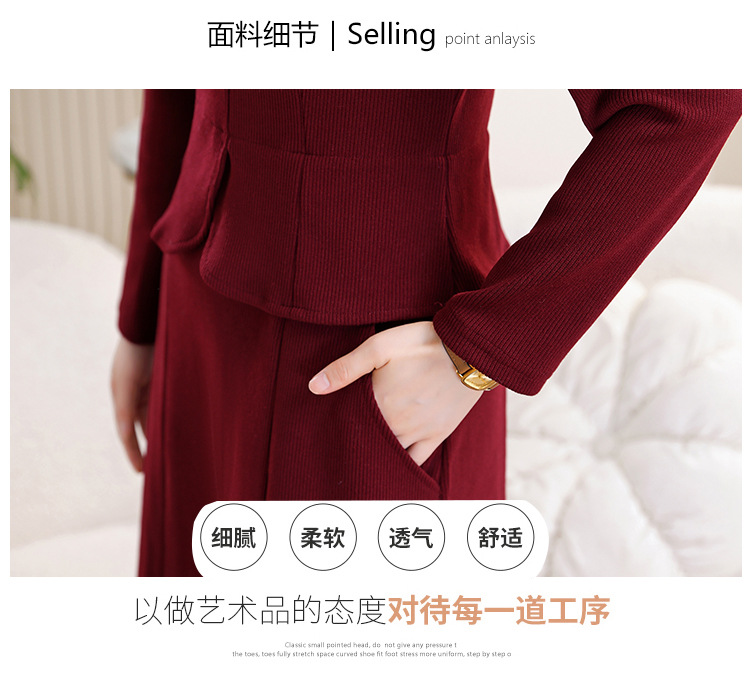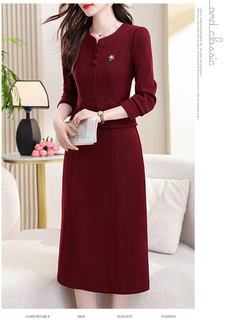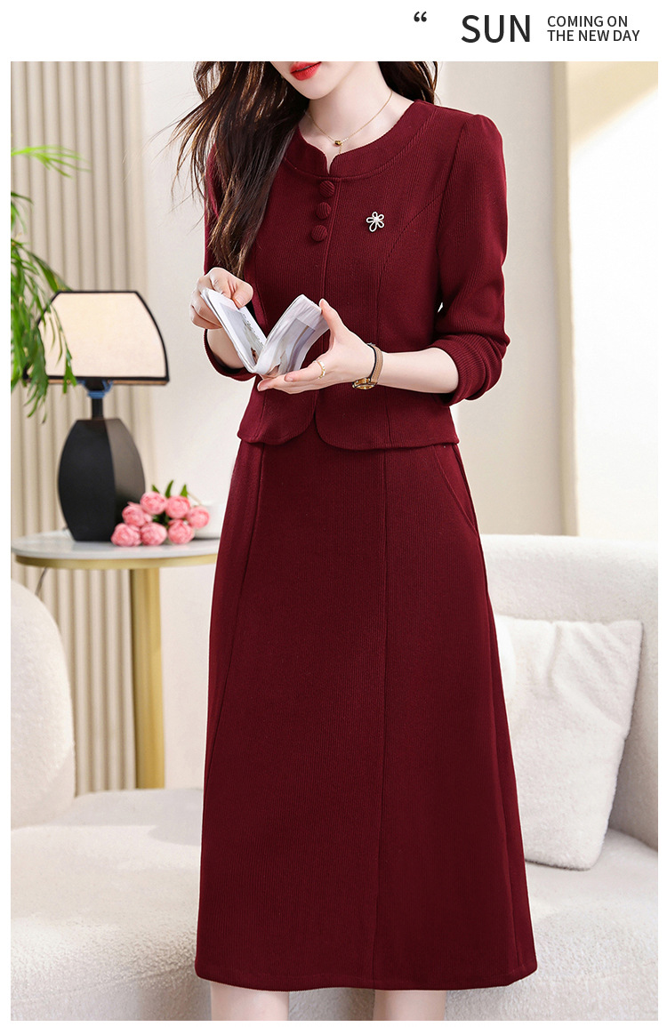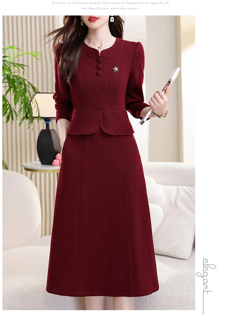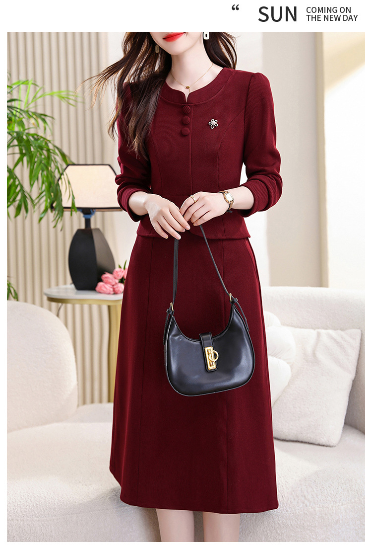zmdm9853加厚保暖红色连衣裙女2025秋冬新款妈妈装气质优雅敬酒服