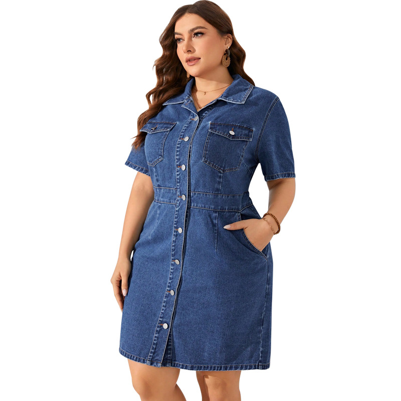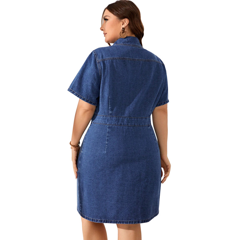 MY1088跨境大码女装亚马逊独立站新款 牛仔 短袖 修身连衣裙 蓬蓬