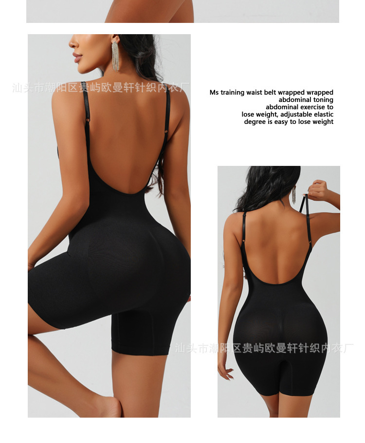 跨境欧美热销无缝瑜伽产后紧身提臀收腹大露背连体平角束身美体衣